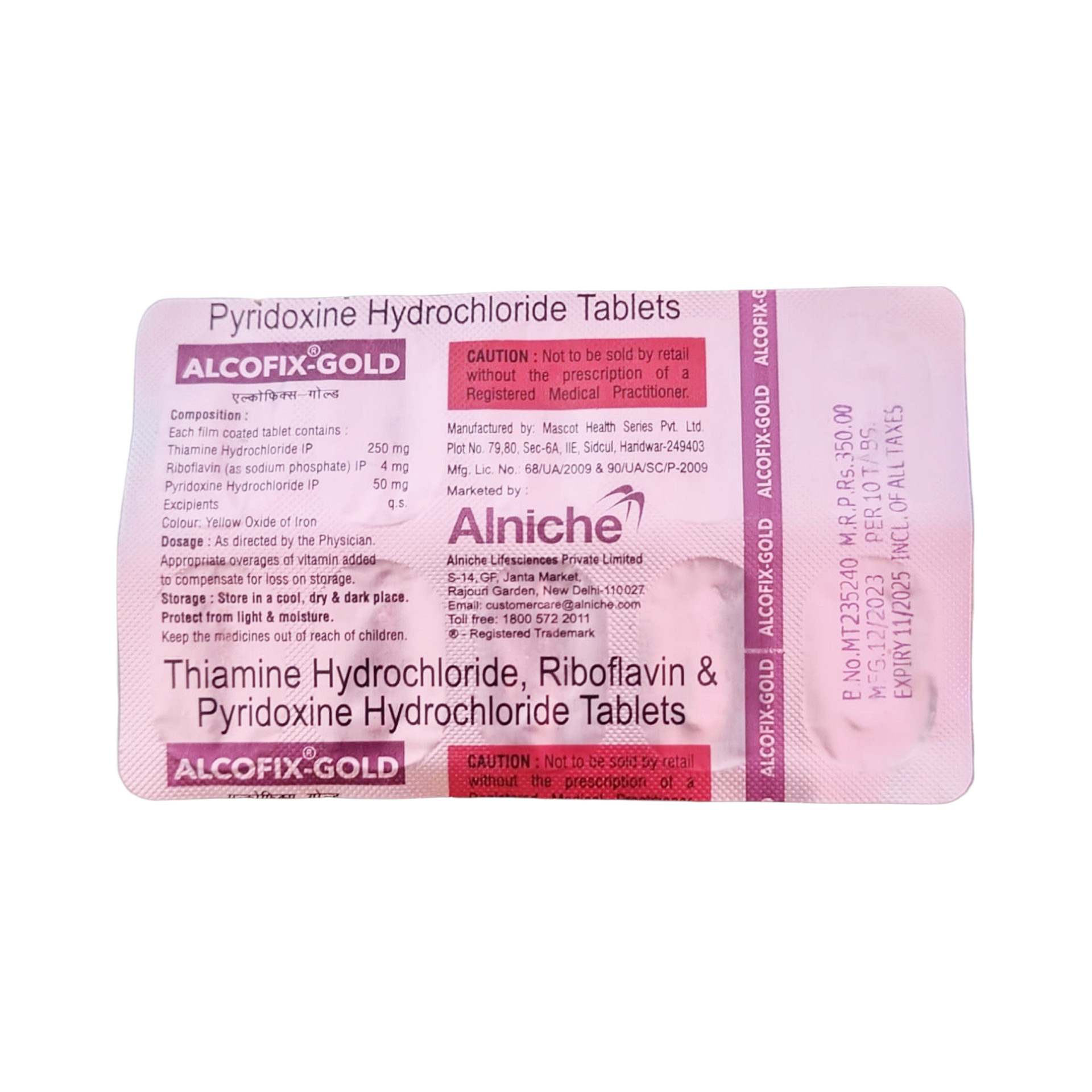 ALCOFIX GOLD TAB (likely Disulfiram) is a medication specifically designed to support the treatment of chronic alcoholism. Its primary mechanism of action involves interfering with the body's normal metabolism of alcohol. When alcohol is consumed by an individual taking Alcofix Gold, the drug blocks the enzyme aldehyde dehydrogenase, leading to a rapid accumulation of acetaldehyde, a toxic byproduct of alcohol. This accumulation triggers a highly unpleasant and severe reaction, known as the disulfiram-alcohol reaction, which includes symptoms such as intense flushing, throbbing headache, nausea, vomiting, chest pain, and difficulty breathing.