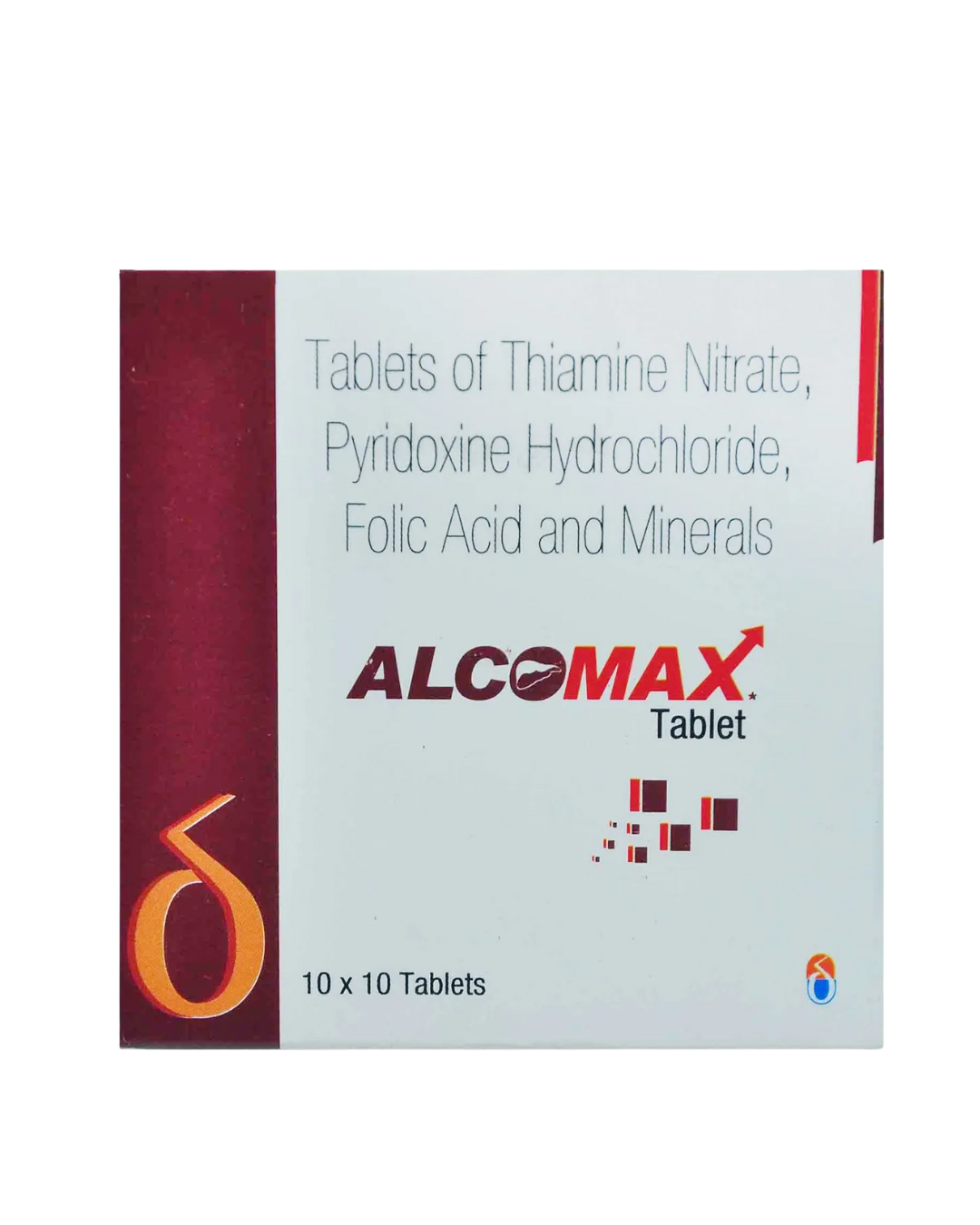Alcomax Tablet provides your daily essential multivitamins and minerals, helping to address nutritional deficiencies caused by inadequate nutrient intake or underlying health conditions. It contains Thiamine (Vitamin B1), Pyridoxine (Vitamin B6), Folic Acid, Zinc, Magnesium, Selenium, and Copper. This tablet supports immune function, aids the body in fighting infections, enhances cognitive performance, promotes healthy cardiovascular function, and helps maintain cholesterol levels. It is especially beneficial for treating micronutrient deficiencies in individuals with chronic alcoholism, during alcohol withdrawal, and in patients with alcoholic liver disease.