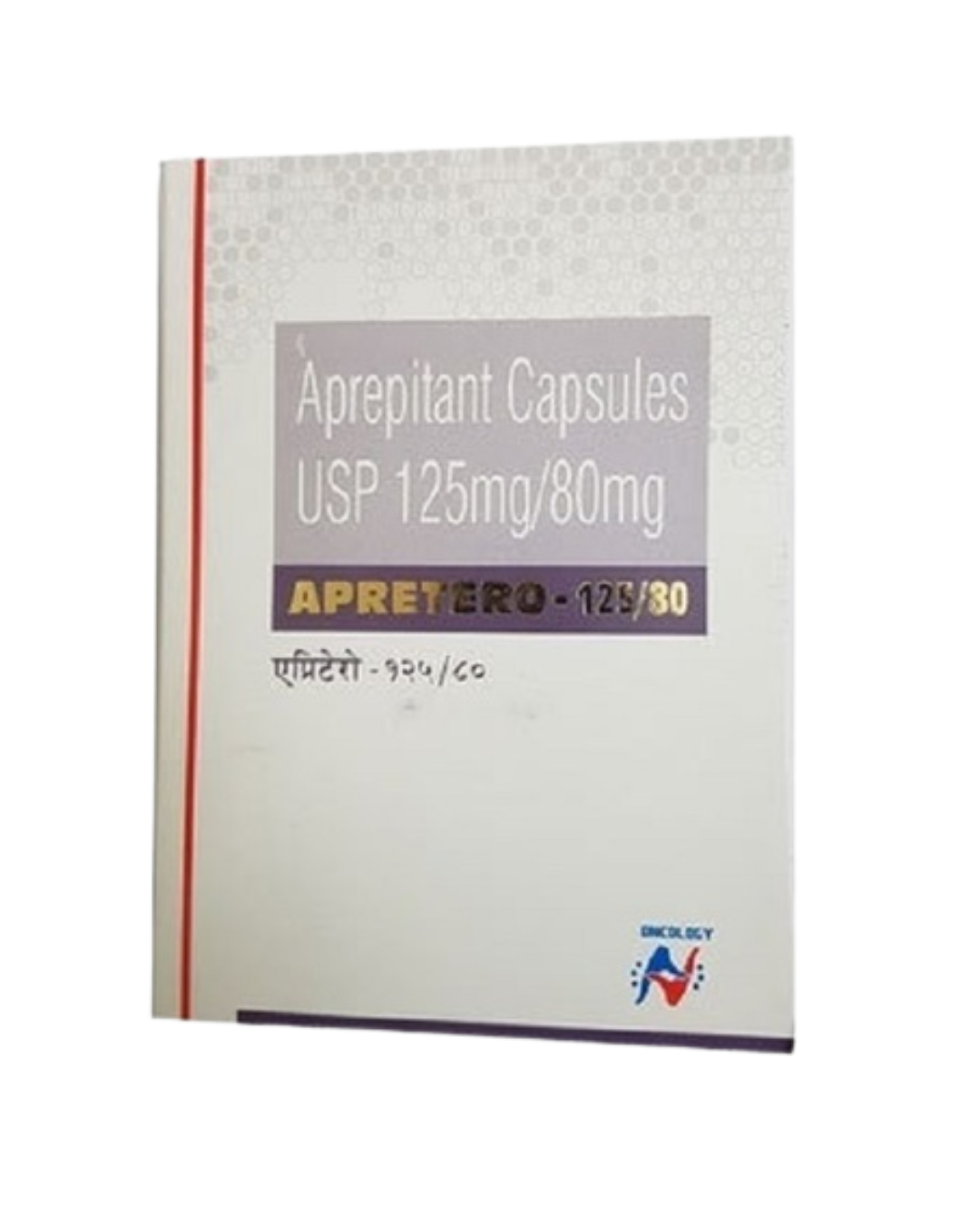Apretero 125mg/85mg Capsule contains Aprepitant in two different strengths and belongs to a class of medicines known as NK1 receptor antagonists. It is used in combination with other medications to prevent nausea and vomiting caused by chemotherapy in adults and in children aged 12 years and older. You should not take this medicine if you are allergic to Aprepitant or any of its ingredients.