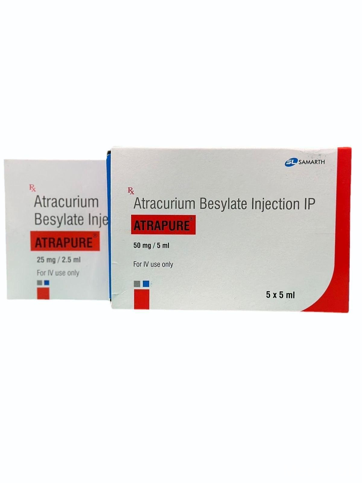 ATRAPURE 5ML ING contains atropine, a potent anticholinergic agent. It exerts its pharmacological effects by competitively blocking muscarinic acetylcholine receptors in various tissues throughout the body. This blockade leads to a wide range of physiological responses, including an increase in heart rate (due to vagal inhibition), relaxation of smooth muscles in the gastrointestinal and genitourinary tracts, bronchodilation, and a significant reduction in glandular secretions such as saliva, sweat, and bronchial mucus. Atropine also causes mydriasis (pupil dilation) and cycloplegia (paralysis of accommodation) in the eye. Due to its diverse and rapid actions, it is a critical medication used in emergency medicine for conditions like bradycardia, as a pre-anesthetic agent to reduce secretions, and as an essential antidote for certain types of poisoning, particularly organophosphate toxicity.