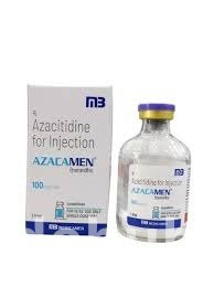 Azacamen 100mg Injection is a hypomethylating agent primarily used in the treatment of myelodysplastic syndromes (MDS) and certain types of acute myeloid leukemia (AML). It works by incorporating into DNA and RNA, leading to hypomethylation of DNA. This process helps to restore normal function to genes that are involved in cell differentiation and proliferation, which may have been silenced due to abnormal methylation in cancer cells. By reversing this epigenetic modification, Azacamen can help to improve blood cell counts, reduce the need for transfusions, and potentially prolong survival in patients with these hematological malignancies. Its mechanism involves inhibiting DNA methyltransferases, enzymes responsible for adding methyl groups to DNA, thereby reactivating tumor suppressor genes and promoting cellular differentiation. This targeted action makes it a crucial therapeutic option for patients who are not candidates for intensive chemotherapy.