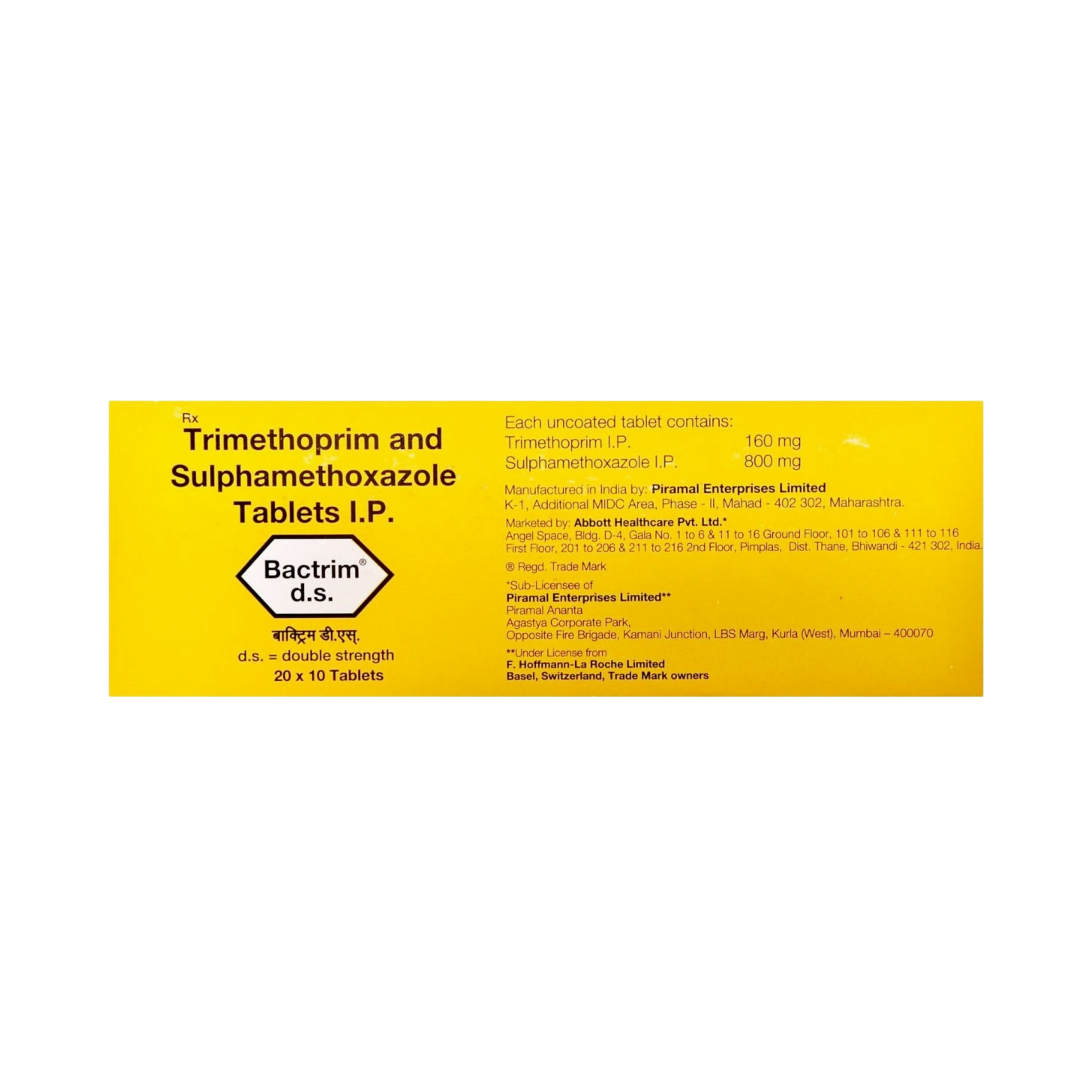 Bactrim DS is a combination antibiotic comprising trimethoprim and sulfamethoxazole, which act synergistically to inhibit bacterial folic acid synthesis. Sulfamethoxazole, a sulfonamide, competitively inhibits dihydropteroate synthase, an enzyme crucial for the incorporation of para-aminobenzoic acid (PABA) into dihydrofolic acid. Trimethoprim then inhibits dihydrofolate reductase, the enzyme responsible for converting dihydrofolic acid to tetrahydrofolic acid. This sequential blockade of two essential steps in the folate pathway leads to a potent bactericidal effect against a broad spectrum of Gram-positive and Gram-negative bacteria. It is a highly effective treatment for various infections, including urinary tract infections, respiratory tract infections, and specific opportunistic infections like *Pneumocystis jirovecii* pneumonia.
