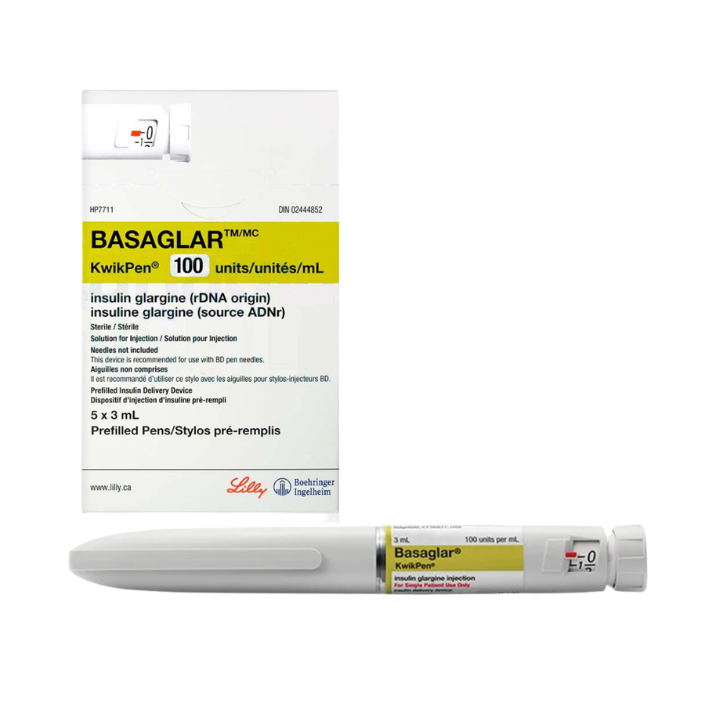Basaglar KwikPen contains insulin glargine, a long-acting human insulin analog specifically engineered to provide a constant, peakless basal insulin level over a full 24-hour period. This sustained action is crucial for effectively controlling blood sugar levels between meals and overnight, mimicking the body's natural basal insulin secretion. Insulin glargine is produced through recombinant DNA technology, and its unique amino acid sequence allows it to form microprecipitates upon subcutaneous injection. This precipitation leads to a slow and consistent release of insulin into the bloodstream, ensuring prolonged glucose-lowering effects. It is a cornerstone therapy indicated for improving glycemic control in both adults and children diagnosed with Type 1 Diabetes Mellitus, as well as in adults with Type 2 Diabetes Mellitus, providing a foundational insulin regimen to manage chronic hyperglycemia.