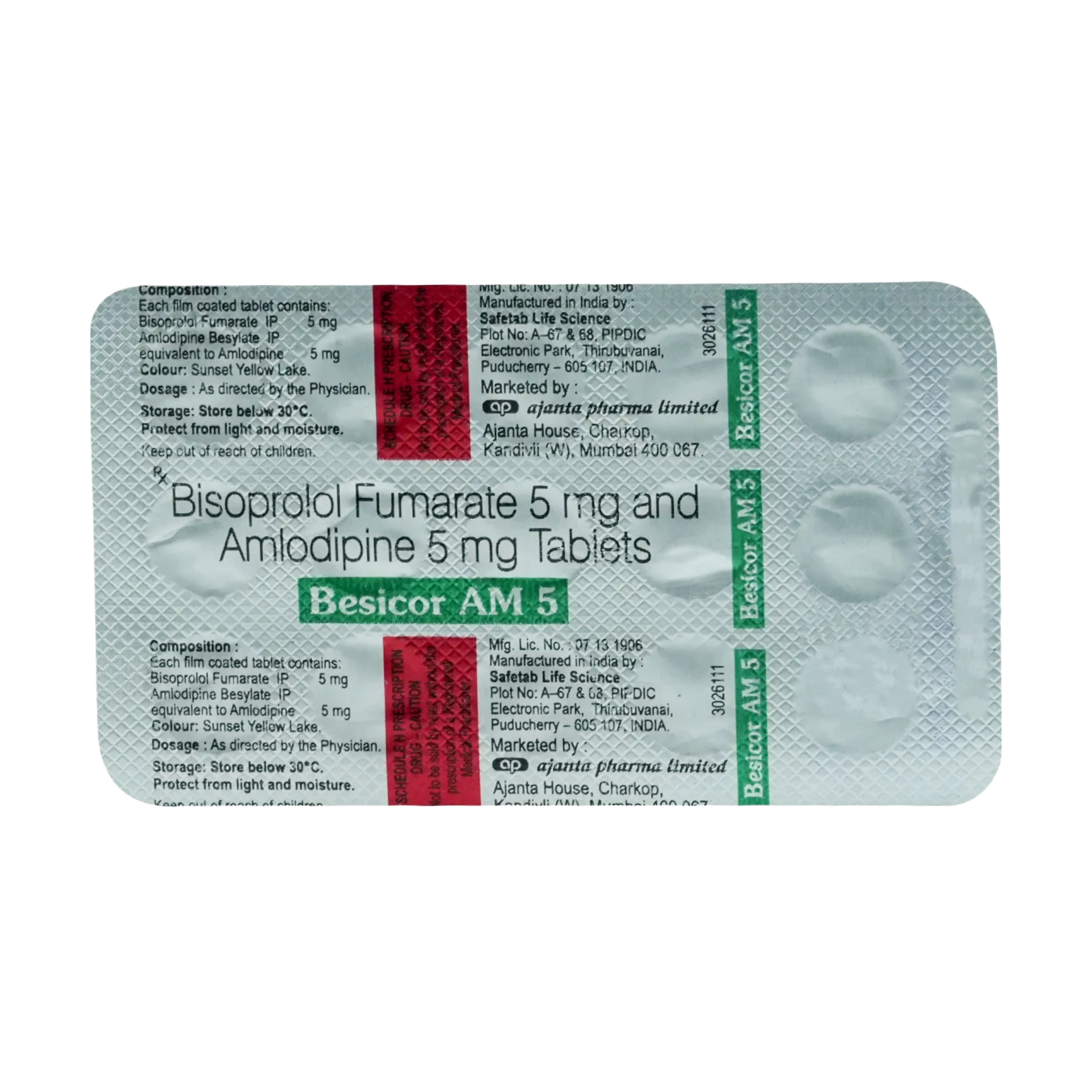This combination medication integrates Bisoprolol, a selective beta-1 adrenergic blocker, with Amlodipine, a dihydropyridine calcium channel blocker, to offer a dual-mechanism approach for managing hypertension and chronic stable angina. Bisoprolol primarily reduces heart rate and myocardial contractility, thereby decreasing cardiac output and oxygen demand, which helps to lower blood pressure and alleviate angina. Amlodipine complements this action by relaxing the smooth muscles in arterial walls, leading to vasodilation and a reduction in peripheral vascular resistance. The combined effect results in a more potent and sustained reduction in blood pressure, improved control of heart rate, and enhanced relief from angina symptoms. This synergistic action addresses multiple physiological pathways involved in cardiovascular regulation, making it an effective option for patients requiring comprehensive blood pressure and angina management.