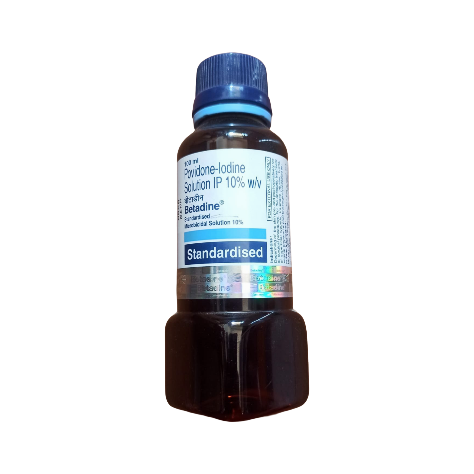 Betadine Solution 10% is a widely recognized antiseptic and disinfectant containing povidone-iodine, a broad-spectrum antimicrobial agent. Povidone-iodine works by releasing free iodine, which rapidly penetrates microbial cell walls and oxidizes proteins, nucleotides, and fatty acids, leading to cell death. This mechanism makes it effective against a wide range of bacteria, viruses, fungi, and protozoa. It is commonly used for skin preparation before surgical procedures, for the treatment of minor cuts, wounds, and abrasions, and as a general antiseptic for skin and mucous membranes. Its characteristic brown color indicates the presence of iodine, and it provides a persistent antimicrobial effect. While highly effective, it should be used with caution in certain populations due to potential systemic absorption of iodine.