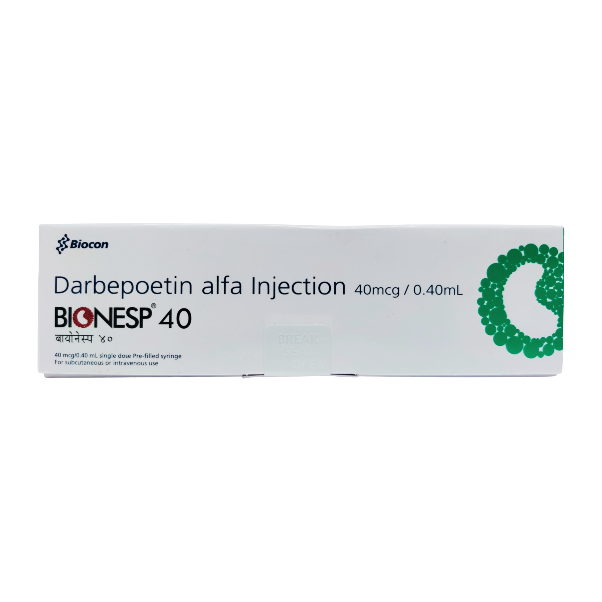Bionesp 40 mcg contains an erythropoiesis-stimulating agent (ESA), a biosimilar to darbepoetin alfa. This medication is a long-acting form of erythropoietin, a hormone naturally produced by the kidneys that stimulates the bone marrow to produce red blood cells. In patients with chronic kidney disease or certain cancers, the body may not produce enough erythropoietin, leading to anemia. Bionesp works by binding to erythropoietin receptors on erythroid progenitor cells in the bone marrow, promoting their proliferation and differentiation into mature red blood cells.