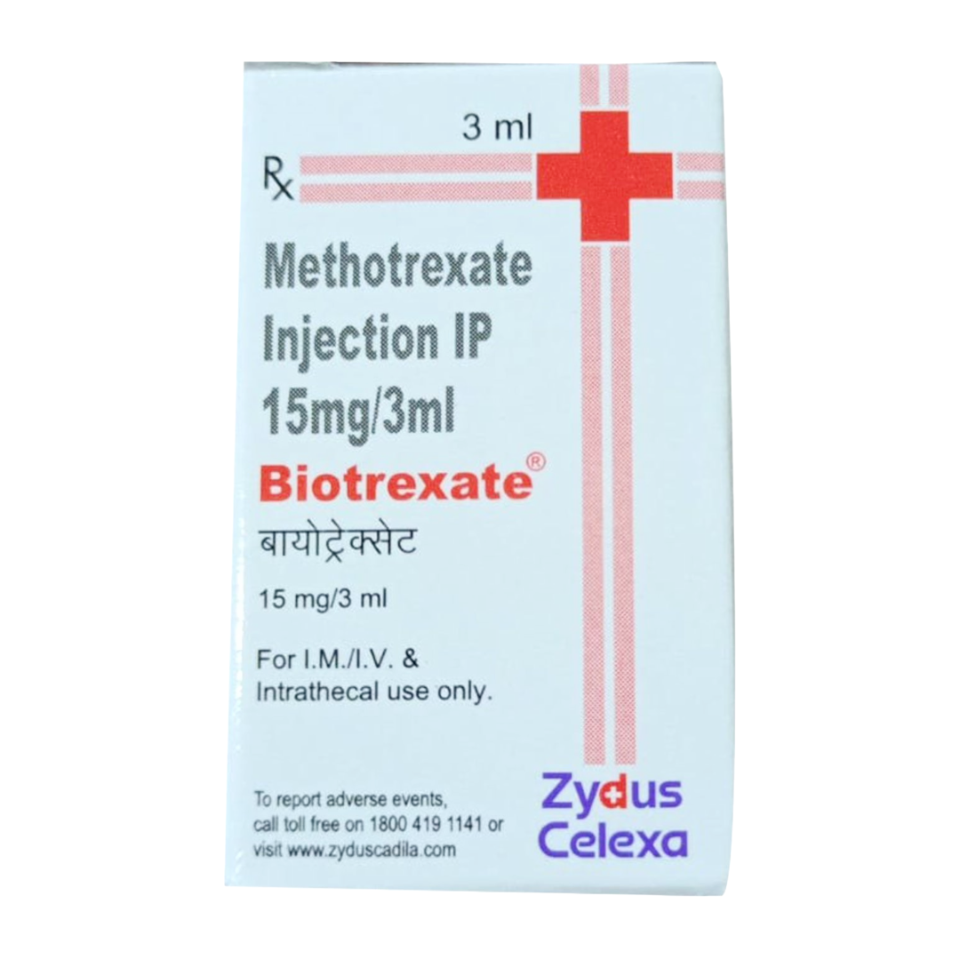 Biotrexate 15mg Injection contains methotrexate as its active ingredient. It is classified as an antimetabolite and immunosuppressant medication. This injection is used to treat various types of cancer in adults, including acute lymphocytic leukemia (ALL), meningeal leukemia, non-Hodgkin’s lymphoma, osteosarcoma, cutaneous T-cell lymphoma, breast cancer, and cancers of the head and neck. In addition to its cancer-fighting properties, Biotrexate is also prescribed for adults with severe psoriasis—a skin condition that causes red, scaly patches—and for the treatment of rheumatoid arthritis.