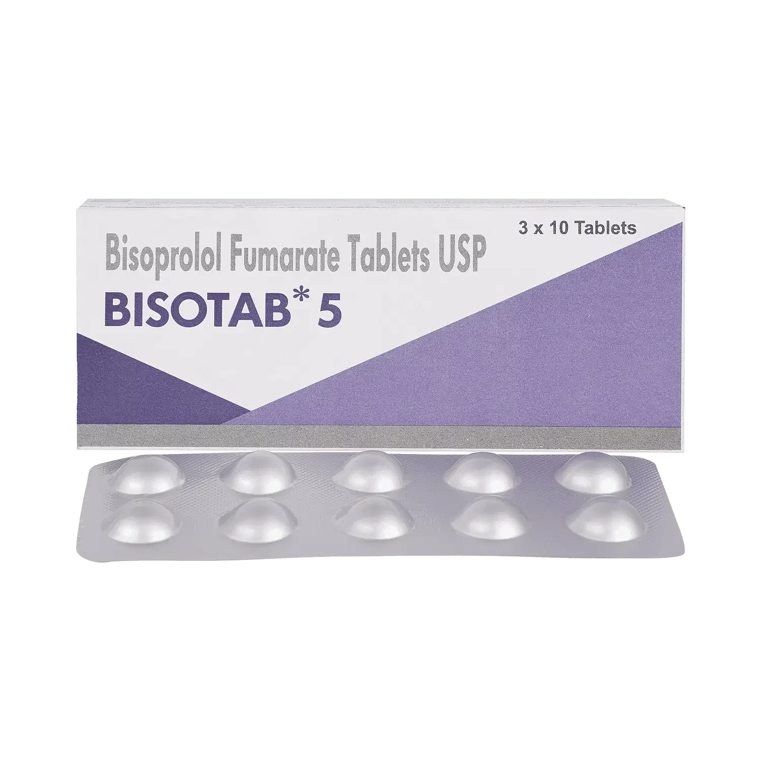 BISOTAB 5 MG TAB contains Bisoprolol, a highly selective beta-1 adrenergic blocker. It primarily acts on beta-1 receptors in the heart, leading to a reduction in heart rate, myocardial contractility, and blood pressure. This selective action helps to decrease the heart's workload and oxygen demand, making it particularly effective in managing various cardiovascular conditions with a lower risk of bronchospasm compared to non-selective beta-blockers. Its pharmacological profile allows for once-daily dosing.