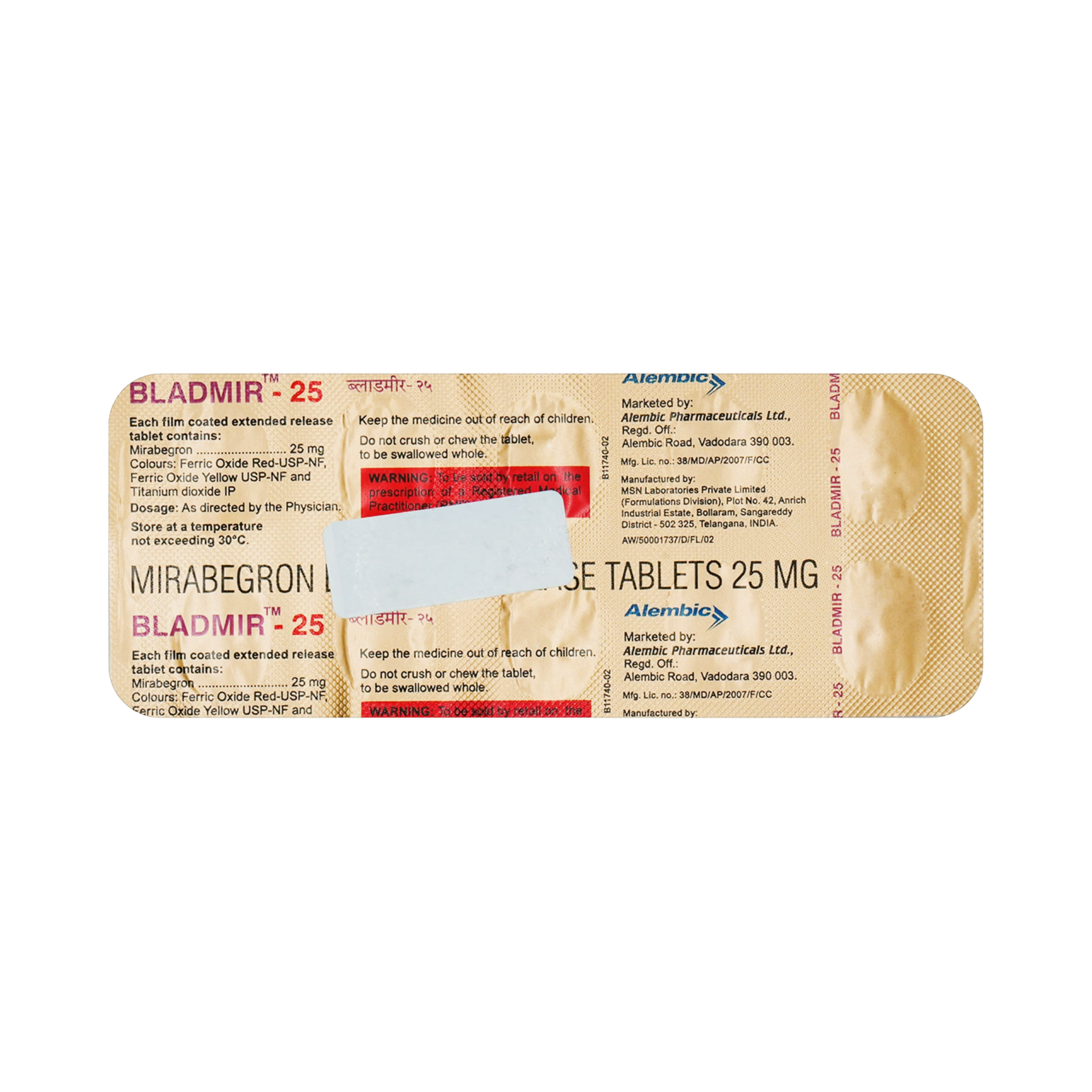 Bladmir, containing Mirabegron, is a novel medication classified as a beta-3 adrenergic agonist, specifically designed for the treatment of overactive bladder (OAB) syndrome. OAB is characterized by symptoms such as urinary urgency, increased urinary frequency, and urge incontinence. Mirabegron works by selectively activating beta-3 adrenergic receptors located on the detrusor muscle of the bladder. This activation leads to the relaxation of the detrusor muscle during the urine storage phase of the bladder fill-void cycle, which in turn increases the bladder's capacity to hold urine without causing involuntary contractions. This mechanism of action is distinct from anticholinergic medications, offering an important alternative for patients who may not tolerate the common side effects of anticholinergics, such as dry mouth and constipation, or for whom anticholinergics are contraindicated. By improving bladder storage function, Mirabegron effectively reduces OAB symptoms, thereby significantly enhancing the patient's quality of life and bladder control.