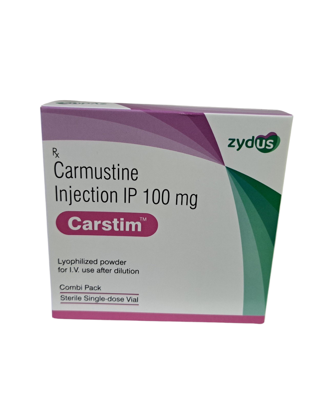 Carstim 100mg Injection is used to treat cancers of the lymphatic system, brain, and certain types of bone marrow cancers. It may also be prescribed for other cancers. This medication can be given alone or in combination with other chemotherapy drugs.