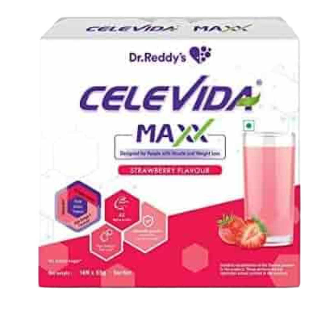 Celevida Maxx Strawberry Flavor 33gm Sachet is a specialized nutritional supplement formulated to provide comprehensive dietary support, particularly for individuals with increased nutritional requirements or those experiencing malnutrition. This high-protein, high-calorie supplement is designed to aid in recovery from illness, surgery, or chronic conditions, helping to replenish essential nutrients and support overall physiological function. It typically contains a balanced blend of proteins, carbohydrates, fats, vitamins, and minerals, crucial for tissue repair, energy production, and maintaining immune health. Its palatable strawberry flavor enhances compliance, making it easier for patients to consume the necessary nutrients.
