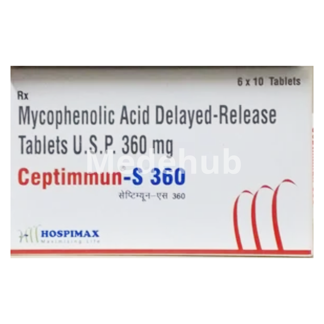 Ceptimmun-S 360mg Tablet is an immunosuppressant medication, most likely containing Mycophenolic Acid (MPA) or a similar derivative. It is primarily used to prevent organ rejection in patients who have undergone kidney, heart, or liver transplantation. The drug works by selectively inhibiting inosine monophosphate dehydrogenase, an enzyme crucial for the de novo synthesis of guanosine nucleotides, which are essential for the proliferation of lymphocytes (T and B cells). By suppressing the proliferation of these immune cells, Ceptimmun-S effectively dampens the body's immune response, preventing it from attacking and rejecting the transplanted organ. It is often used in combination with other immunosuppressants and may also be indicated for the treatment of certain severe autoimmune diseases.