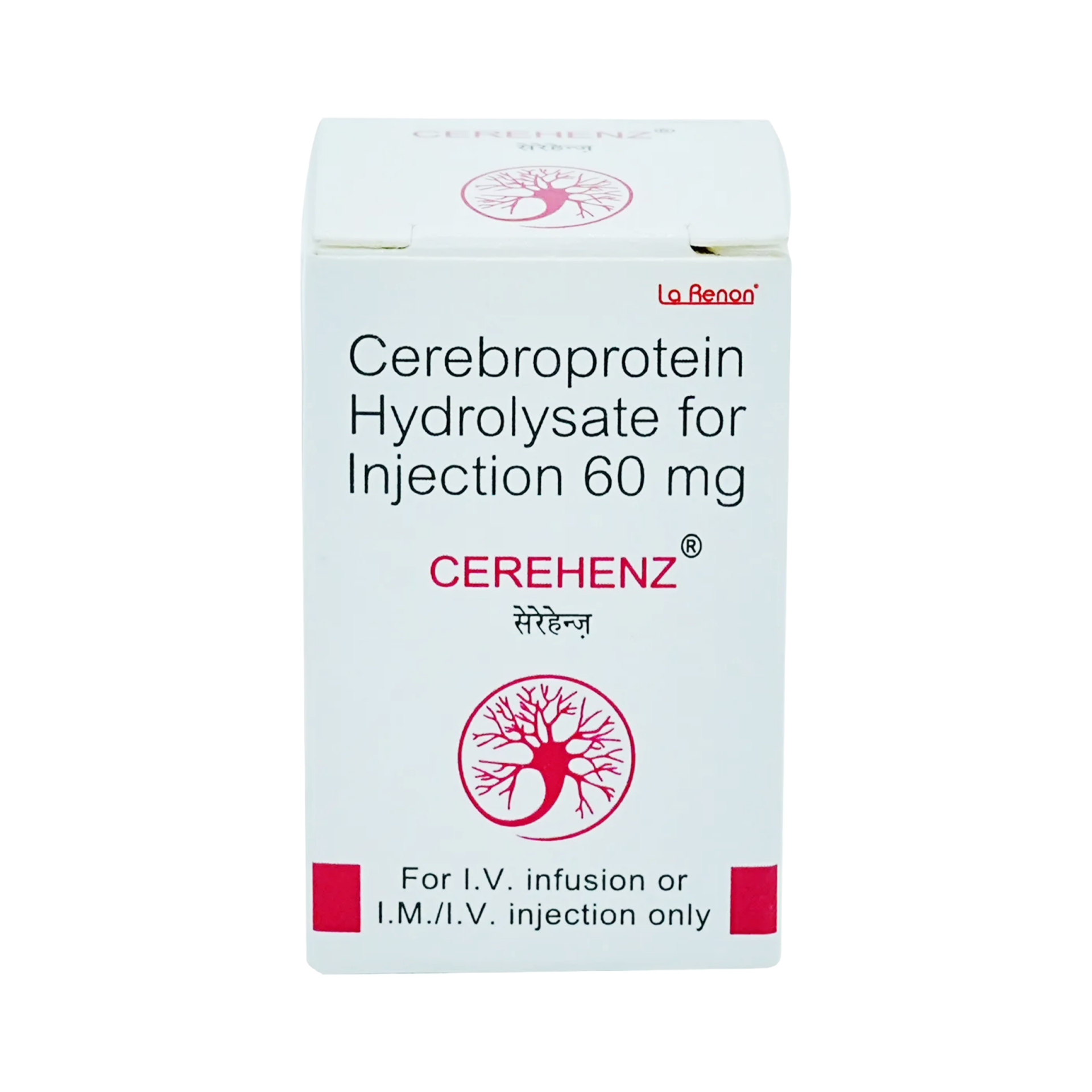 CEREHENZ 60 INJ VIL is an advanced injectable pharmaceutical formulation specifically developed for neuroprotection and comprehensive cognitive support, frequently employed in clinical scenarios involving cerebral ischemia or progressive neurodegenerative processes. This medication typically comprises active compounds engineered to enhance neuronal survival, facilitate synaptic repair mechanisms, and significantly improve overall cerebral metabolic function. Its therapeutic efficacy stems from its ability to modulate key neurotransmitter systems, effectively reduce excitotoxicity, and optimize microcirculation within the brain's intricate vascular network. The primary objective of CEREHENZ is to aid in the restoration of neurological function, minimize the extent of brain damage following acute neurological events, and foster long-term cognitive health by promoting neuronal regeneration and plasticity. The parenteral route of administration ensures rapid systemic availability and targeted delivery to the central nervous system, maximizing its therapeutic impact.