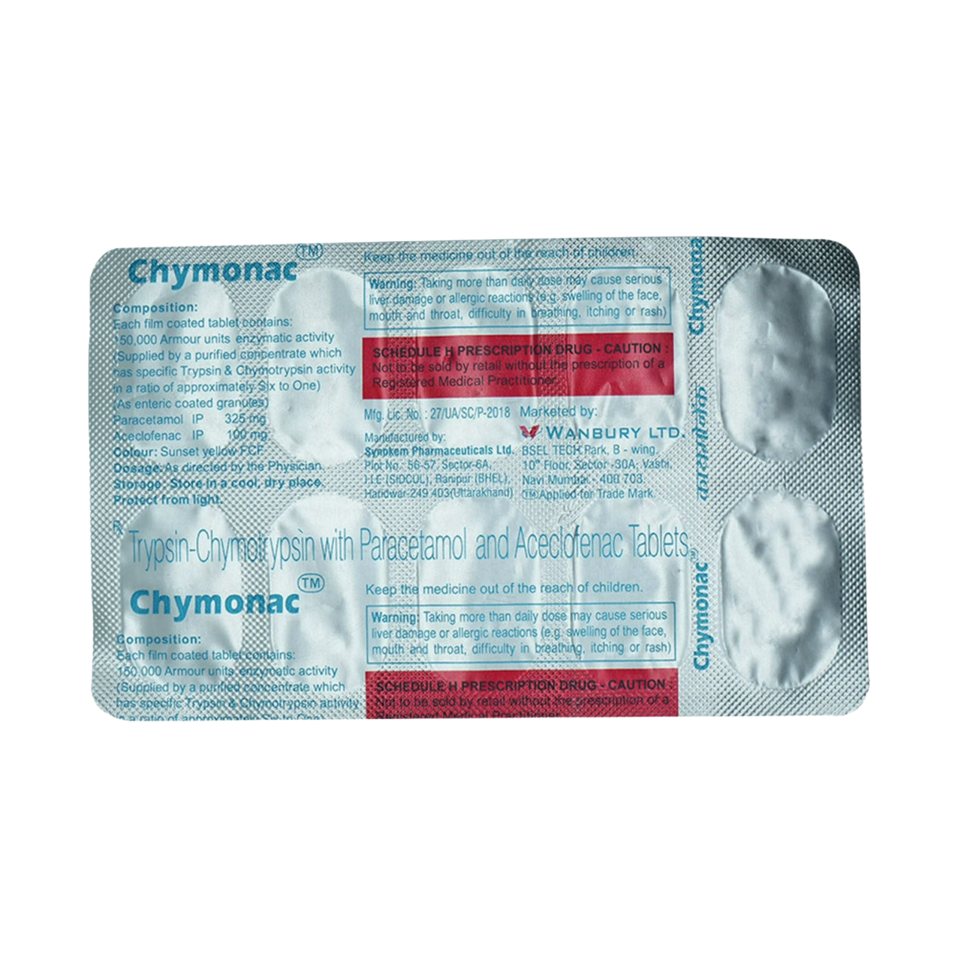 Chymonac Tab typically combines an anti-inflammatory drug like Aceclofenac with proteolytic enzymes such as Chymotrypsin and Trypsin. This formulation is designed to provide comprehensive relief from pain, inflammation, and swelling associated with various conditions. Aceclofenac, a non-steroidal anti-inflammatory drug (NSAID), works by inhibiting prostaglandin synthesis, thereby reducing pain and inflammation. The enzymes, Chymotrypsin and Trypsin, aid in breaking down abnormal proteins at the site of injury, facilitating the absorption of edema and promoting faster tissue repair. This synergistic action helps to alleviate discomfort and accelerate recovery.