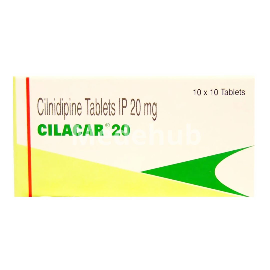 Cilacar 20mg Tablet contains Cilnidipine, a dihydropyridine calcium channel blocker used to treat essential hypertension. It works by inhibiting the influx of calcium ions into vascular smooth muscle cells, leading to vasodilation and a reduction in peripheral vascular resistance. A distinctive feature of Cilnidipine is its dual blockade of both L-type and N-type calcium channels. The L-type channel blockade primarily relaxes arterial smooth muscles, contributing to its antihypertensive effect. The N-type channel blockade helps to suppress sympathetic overactivity, which can mitigate reflex tachycardia often associated with other calcium channel blockers. This unique mechanism provides effective and sustained blood pressure control, reducing the risk of cardiovascular events like strokes, heart attacks, and kidney damage. Its sustained action allows for once-daily dosing, providing consistent blood pressure management. Cilnidipine is well-absorbed orally and metabolized in the liver, with excretion primarily through the kidneys and feces, making it suitable for various patient populations, including those with mild to moderate renal impairment under medical supervision.