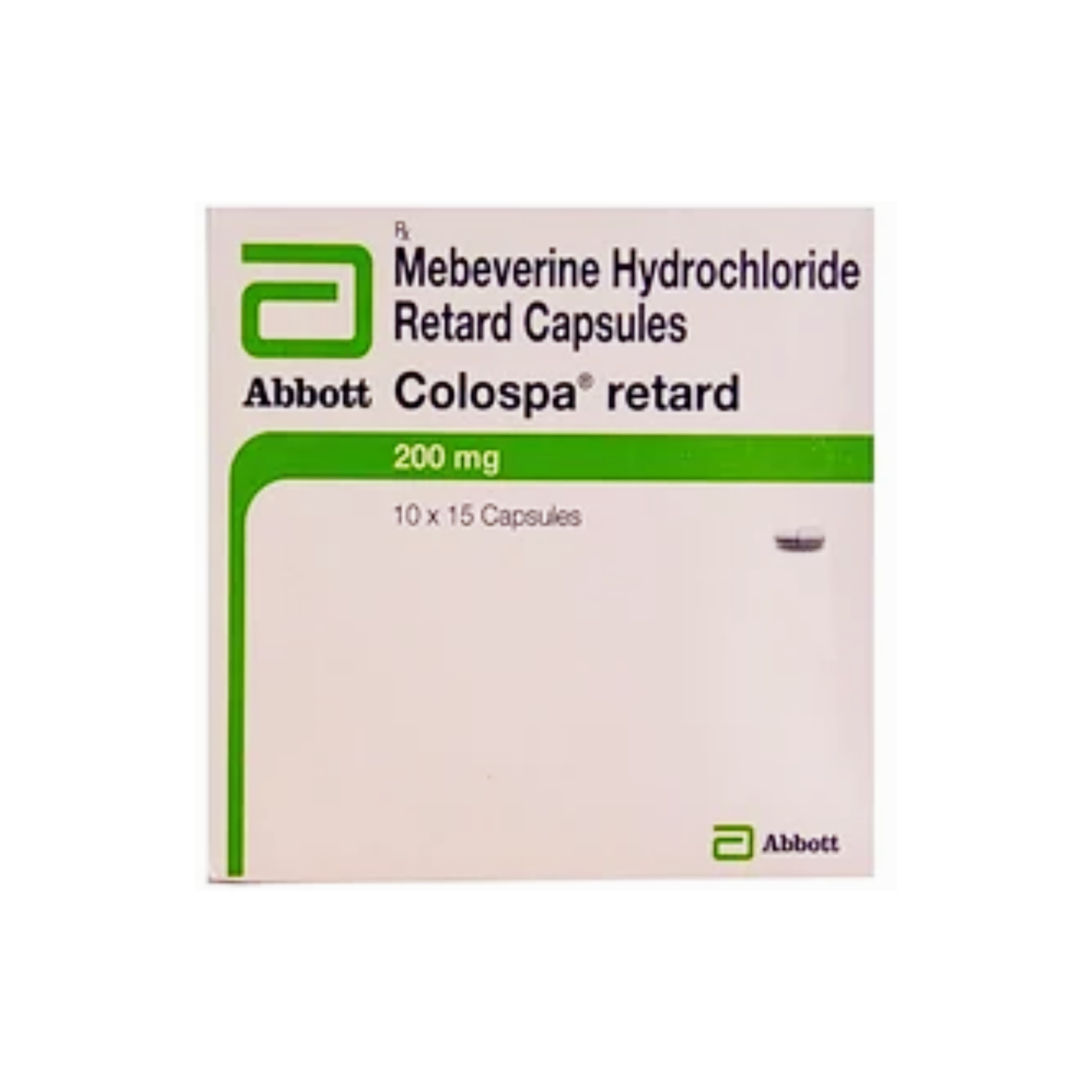 COLOSPA RETD, containing Mebeverine, is an antispasmodic agent specifically designed to relieve symptoms of irritable bowel syndrome (IBS) and other functional bowel disorders. Mebeverine acts directly on the smooth muscle of the gastrointestinal tract, causing relaxation and reducing spasms without affecting normal gut motility. Unlike anticholinergic drugs, it does not have significant systemic anticholinergic side effects, making it a well-tolerated option for long-term management. The 'RETD' (Retard) formulation provides a sustained release of the active ingredient, ensuring prolonged action and consistent symptom control throughout the day. This targeted action helps to alleviate abdominal pain, cramping, bloating, and discomfort associated with IBS, improving the quality of life for patients by restoring normal bowel function without causing constipation or diarrhea.