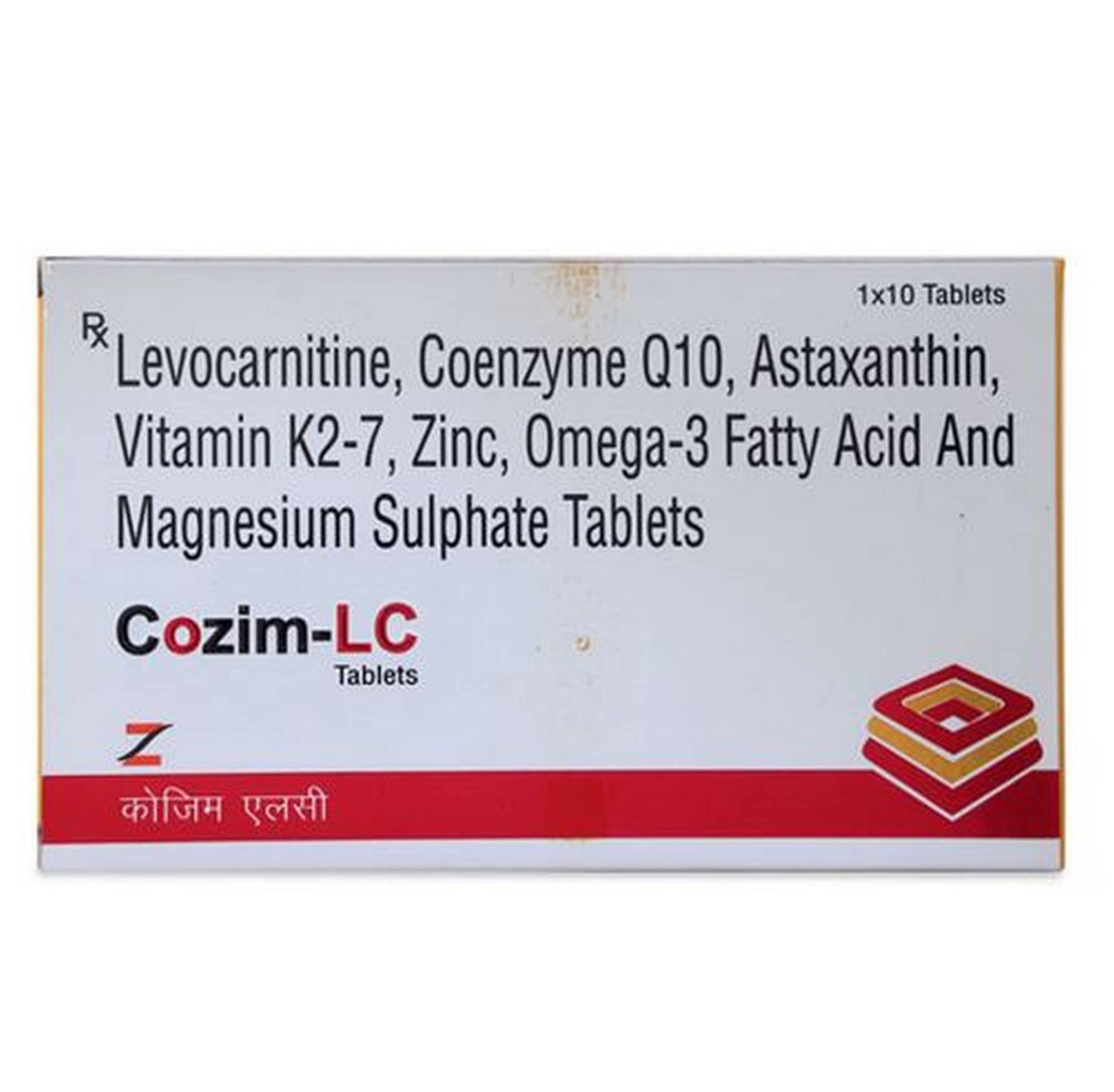 Cozim LC Tab is a nutritional supplement formulated with a synergistic blend of Coenzyme Q10 (CoQ10) and L-Carnitine. CoQ10 is a vital antioxidant and a key component in the electron transport chain, essential for cellular energy production, particularly in high-energy demand organs like the heart, liver, and muscles. L-Carnitine, an amino acid derivative, plays a crucial role in transporting long-chain fatty acids into the mitochondria, where they are oxidized to produce energy.