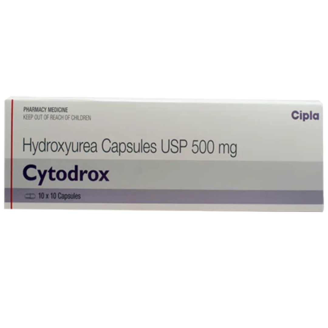 Cytodrox 500mg Capsule, containing Hydroxyurea (also known as Hydroxycarbamide), is an antineoplastic agent primarily used in the treatment of various myeloproliferative disorders and certain cancers. It works by inhibiting ribonucleotide reductase, an enzyme essential for DNA synthesis and repair. This action leads to cell cycle arrest and ultimately cell death, particularly in rapidly dividing cells like cancer cells.