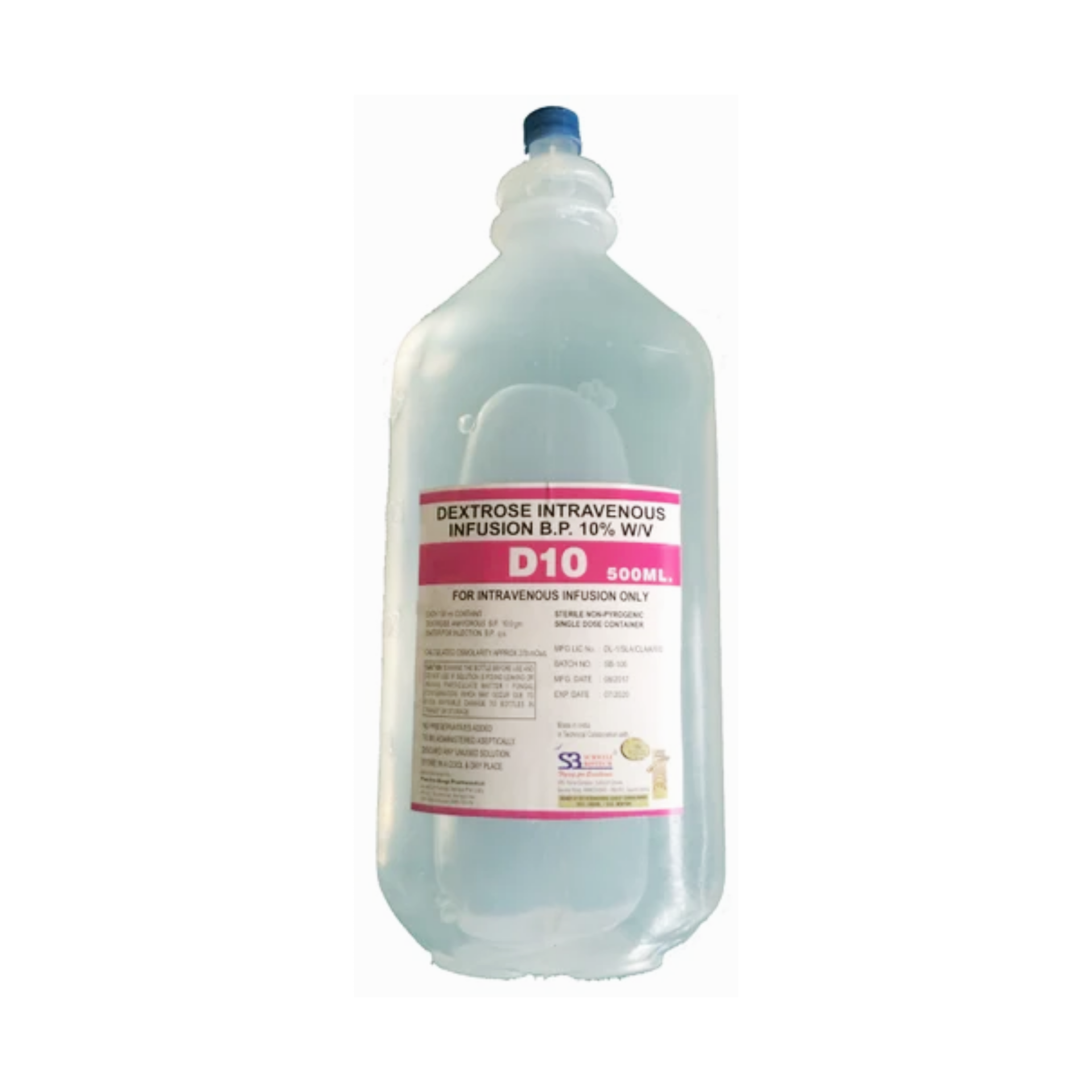 Dextrose 10% in water (D10W) is a hypertonic intravenous solution containing 10 grams of dextrose per 100 mL. It provides a more substantial caloric source compared to D5W and is used when a greater glucose load is required, such as in moderate hypoglycemia, for nutritional support, or to prevent ketosis during periods of inadequate oral intake. While hypertonic, it is less concentrated than D25W, making it suitable for peripheral vein administration under careful monitoring, though central venous access is preferred for prolonged use. It helps maintain fluid balance and provides essential energy, supporting metabolic needs in various clinical scenarios.