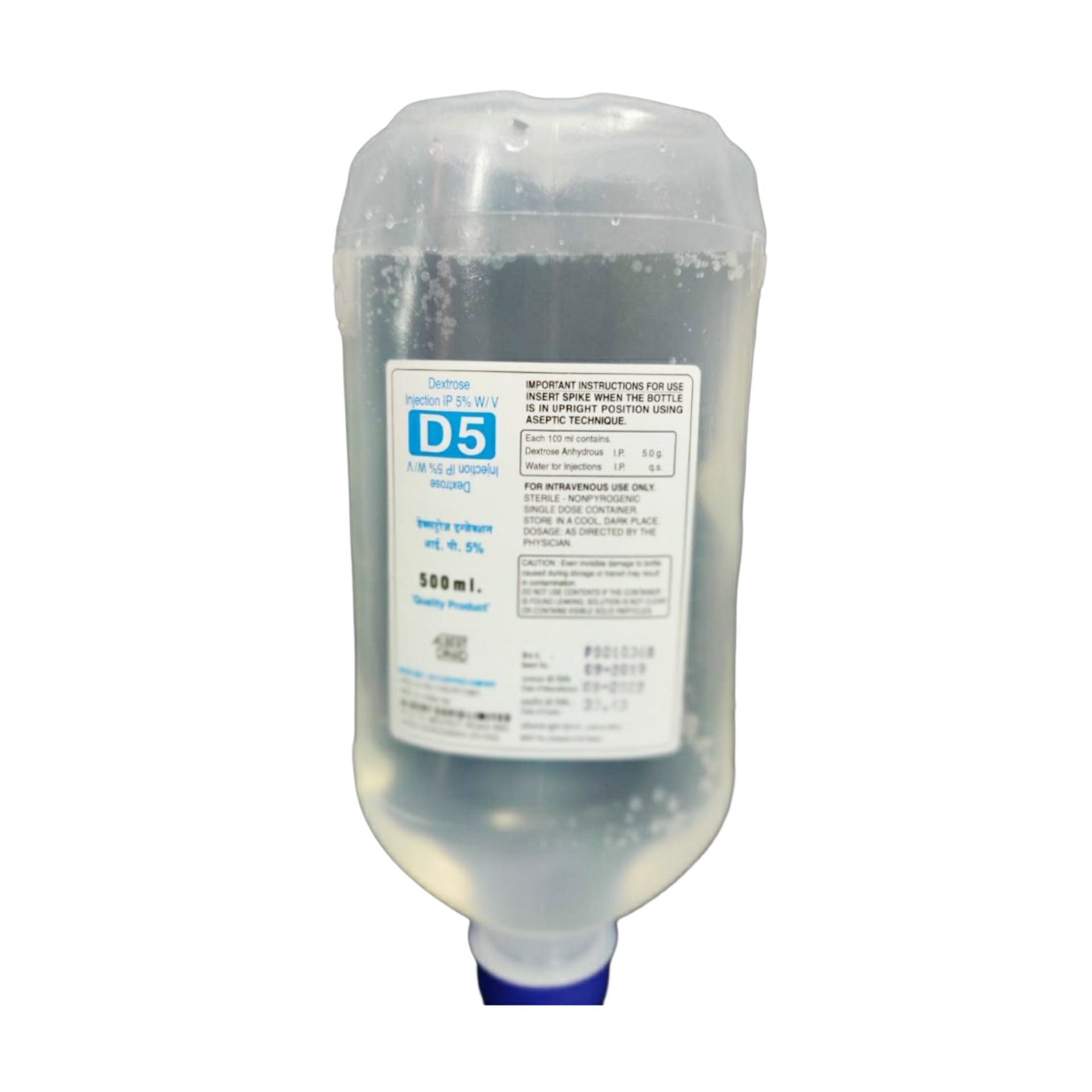 Dextrose 5% in water (D5W) is an intravenous solution containing 5 grams of dextrose (glucose) per 100 mL, making it an isotonic solution initially, but physiologically hypotonic as glucose is metabolized. It provides a source of calories and free water, which helps in maintaining fluid balance and preventing dehydration. This solution is primarily used to replenish fluid losses, provide minimal caloric support, and serve as a vehicle for the administration of compatible medications. It is crucial in situations requiring hydration without significant electrolyte replacement or when a patient's glucose levels need to be maintained, supporting various metabolic functions.