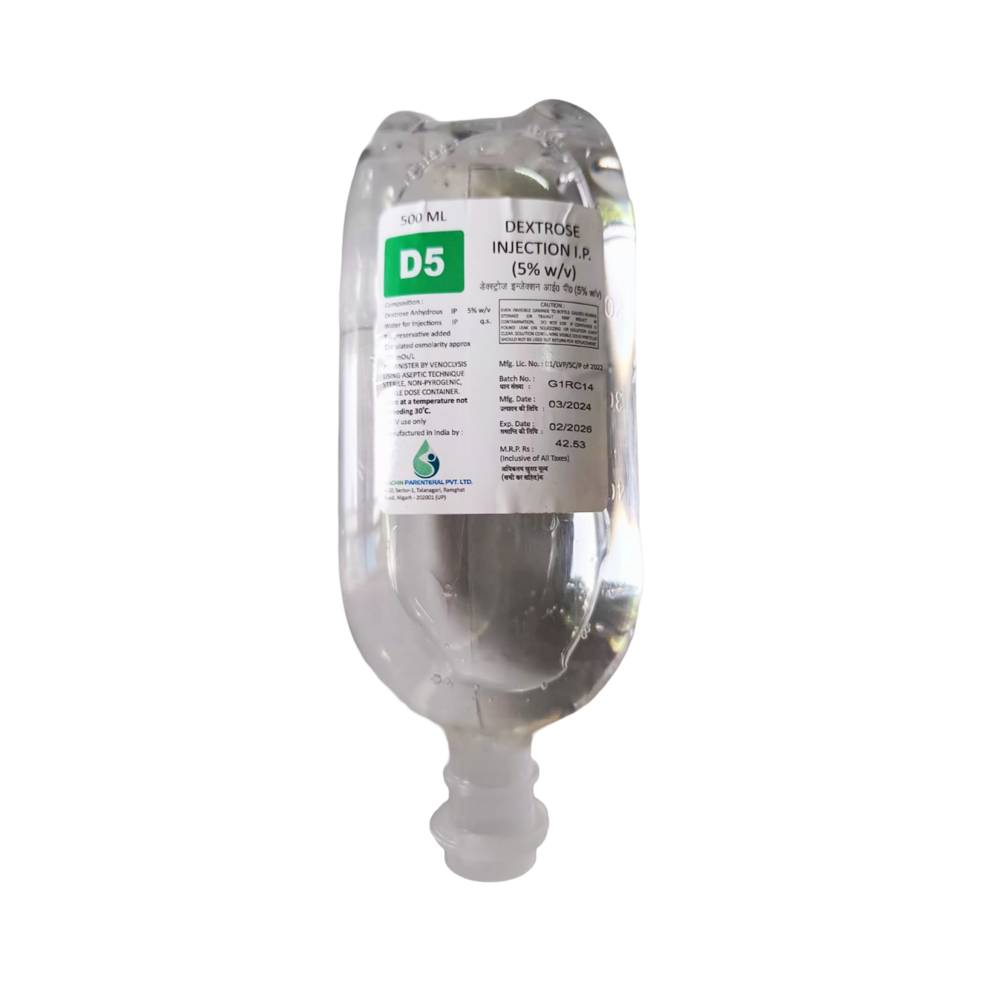 Dextrose 5% in water (D5W) is an intravenous solution containing 5 grams of dextrose (glucose) per 100 mL, making it an isotonic solution initially, but physiologically hypotonic as glucose is metabolized. It provides a source of calories and free water, which helps in maintaining fluid balance and preventing dehydration. This solution is primarily used to replenish fluid losses, provide minimal caloric support, and serve as a vehicle for the administration of compatible medications. It is crucial in situations requiring hydration without significant electrolyte replacement or when a patient's glucose levels need to be maintained, supporting various metabolic functions.