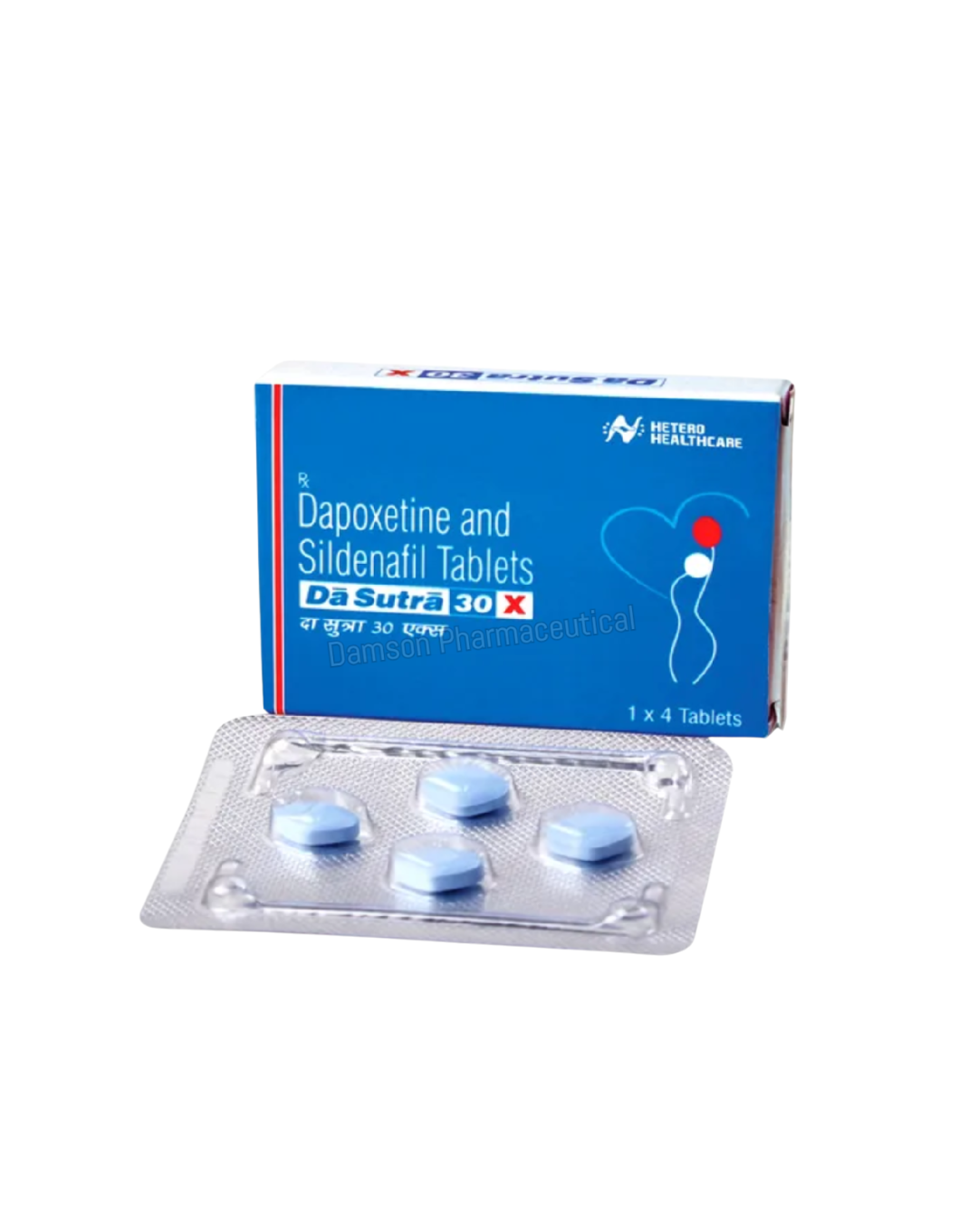 DA Sutra 30X 50 mg/30 mg Tablet is a prescription medicine that combines two drugs, used for the treatment of premature ejaculation and erectile dysfunction in adult men. It works by improving blood flow to the penis, which helps achieve and maintain an erection. This medicine should only be taken under a doctor’s supervision.