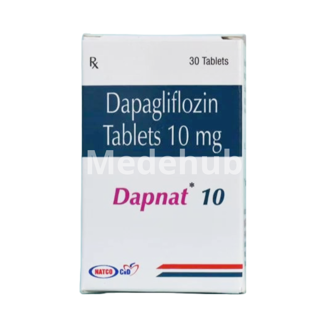 Dapnat 10 Tablet contains 'Dapagliflozin' a protein found in kidney known as sodium-glucose cotransporters-2 (SGLT-2 inhibitor) that works by inhibiting the reabsorption of glucose in the body, resulting in an increase in glucose excretion through urine. The removal of excessive glucose helps to lower down the blood sugar level.