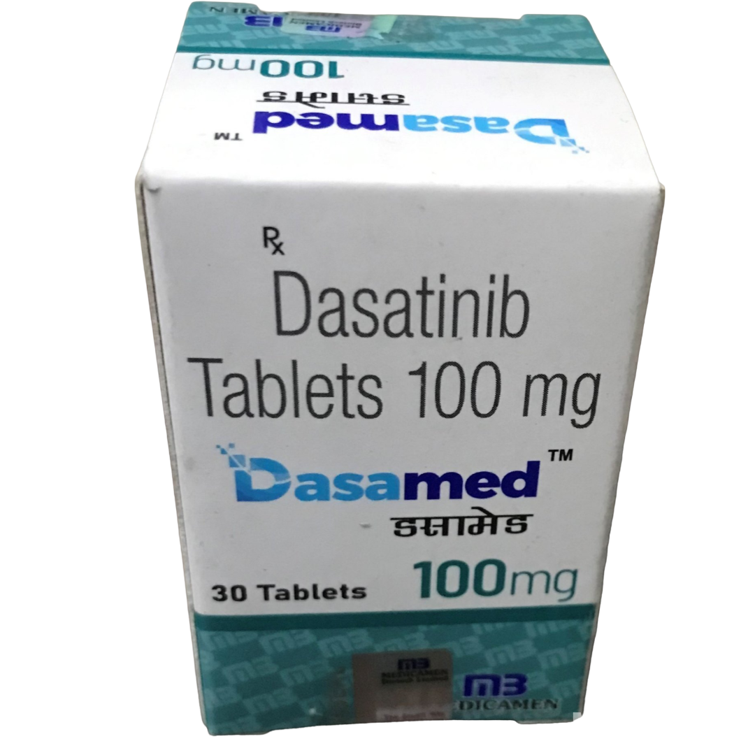 Dasamed 100mg Tablet belongs to a class of medications known as tyrosine kinase inhibitors (TKIs). It functions by selectively inhibiting the activity of specific enzymes, particularly BCR-ABL tyrosine kinase, which are crucial for the proliferation and survival of cancer cells in certain types of leukemia. By blocking these abnormal proteins, the medication helps to control the growth of cancerous cells and reduce their numbers in the body. This targeted action minimizes damage to healthy cells compared to traditional chemotherapy, leading to a more specific therapeutic effect.