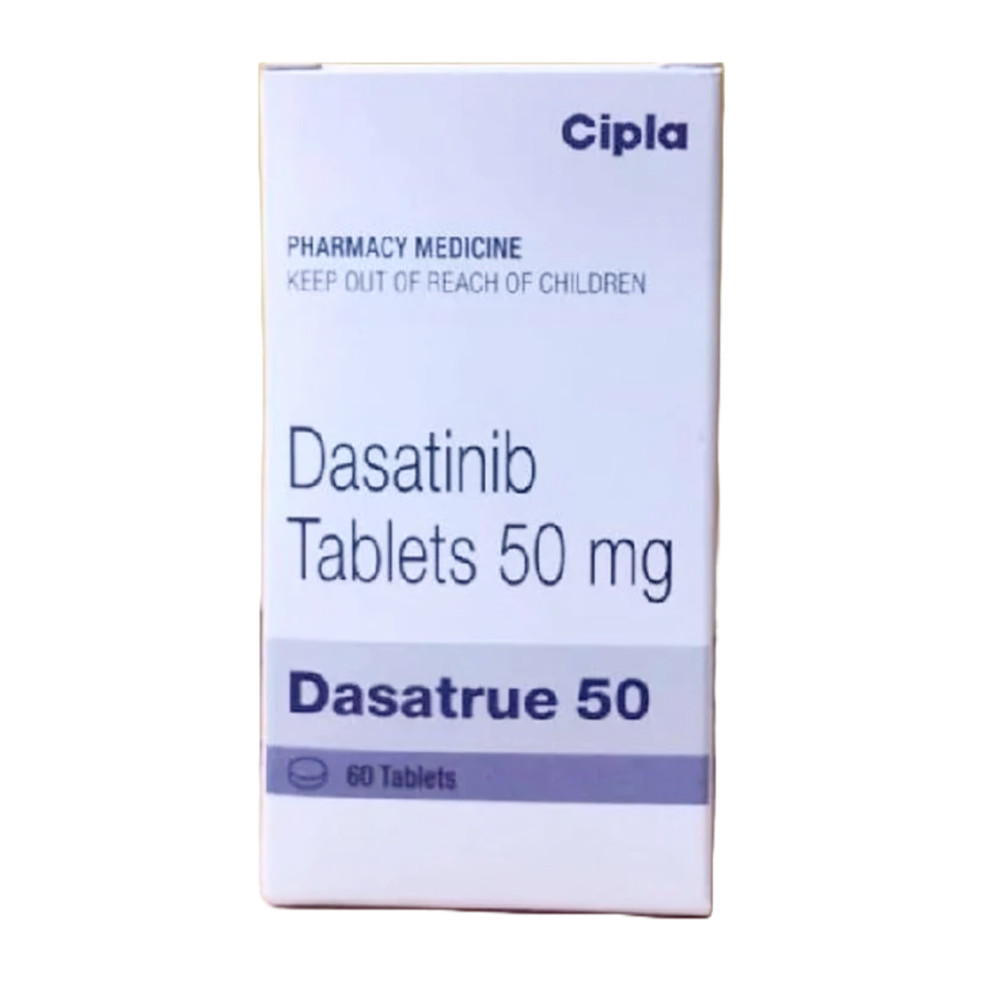Dasatrue 50mg Tablet contains the active ingredient Dasatinib and is prescribed for adults and children over one year old with Chronic Myeloid Leukemia (CML). It is used to treat newly diagnosed Philadelphia chromosome-positive (Ph+) CML in the chronic phase, as well as Ph+ Acute Lymphoblastic Leukemia (ALL) in patients who are resistant to other treatments. CML is a type of blood cancer characterized by the overproduction of white blood cells caused by an abnormal Philadelphia chromosome. ALL is the most common type of blood cancer in children, where lymphocytes (a type of white blood cell) multiply rapidly and live longer than normal.