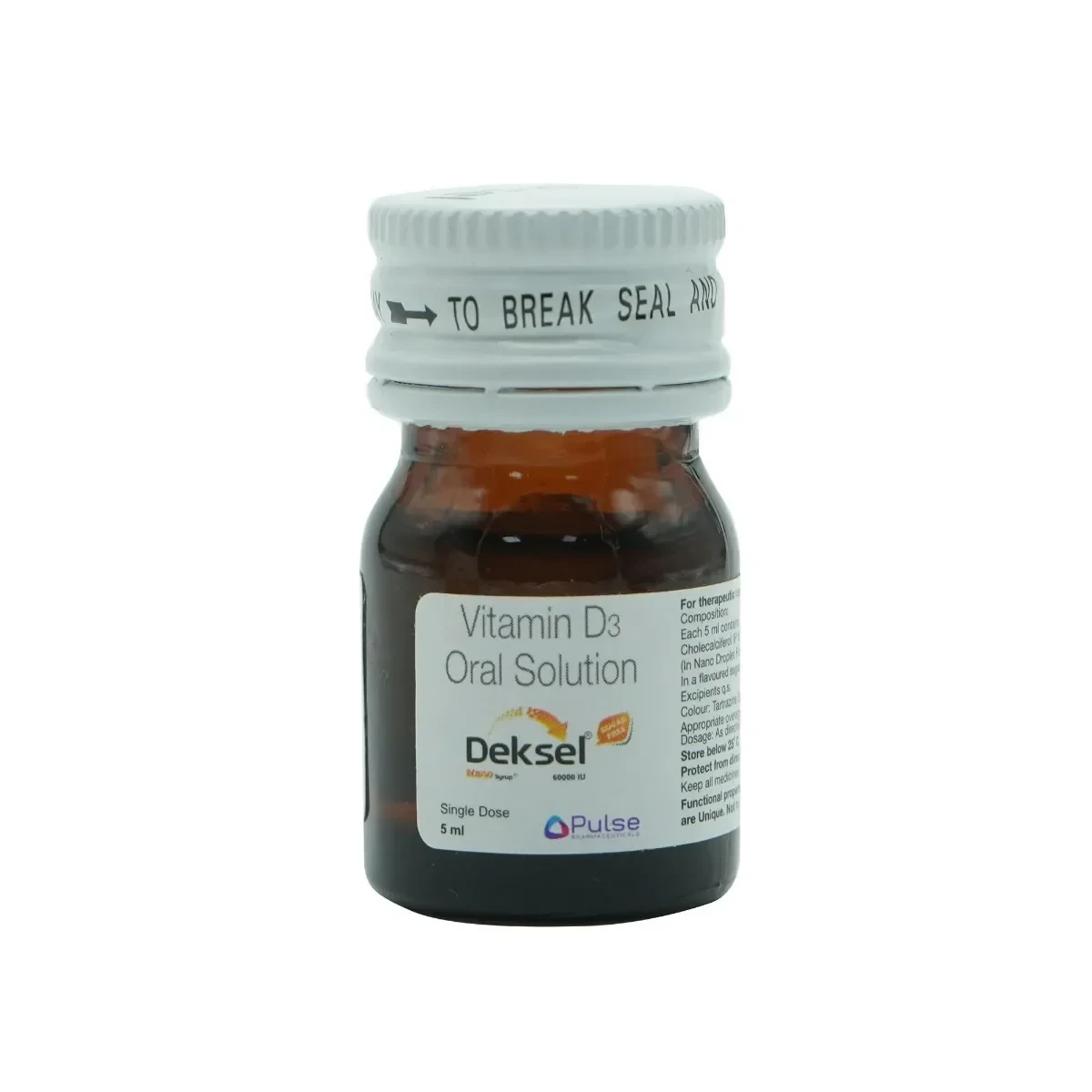 DEKSEL 60K NANO SF 5ML is a high-potency, sugar-free Vitamin D3 (Cholecalciferol) supplement in a nano-emulsified liquid form, providing 60,000 International Units (IU) per dose. This formulation is specifically designed for the rapid correction of severe Vitamin D deficiency and for maintenance therapy in individuals requiring higher doses. The nano-emulsified, sugar-free liquid ensures superior absorption and bioavailability, making it highly effective even in patients with malabsorption syndromes or those with significant dietary restrictions. Vitamin D is critical for maintaining calcium and phosphate balance, which are fundamental for bone mineralization and skeletal integrity.