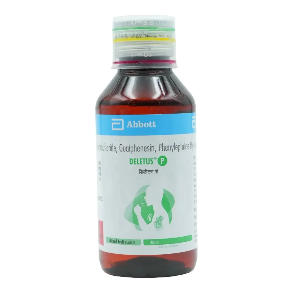 DELETUS P SYP 100ML is an oral syrup formulated to provide symptomatic relief from cough and cold symptoms, often with a focus on pediatric use given the 'P' designation. This medication typically contains a combination of active ingredients, which may include an antitussive to suppress the cough reflex, an expectorant to help thin and clear mucus from the airways, and potentially an antihistamine or decongestant to alleviate sneezing, runny nose, and nasal congestion. The synergistic action of these components aims to reduce the severity and frequency of coughing while addressing other bothersome symptoms associated with upper respiratory tract infections.