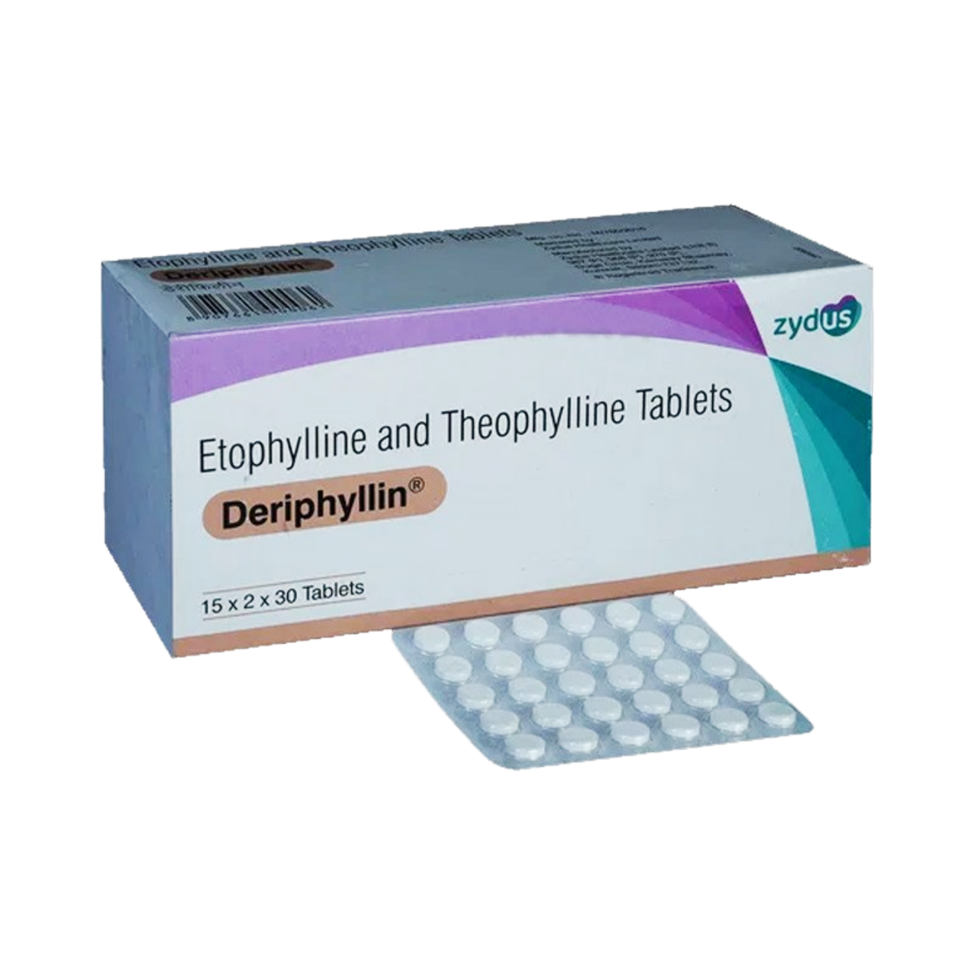 Deriphyllin tablets contain a combination of etophylline and theophylline, both xanthine derivatives that function as bronchodilators. Theophylline primarily acts by inhibiting phosphodiesterase enzymes, leading to an increase in intracellular cyclic AMP (cAMP), which results in the relaxation of bronchial smooth muscles and a reduction in inflammation. Etophylline, a derivative of theophylline, offers similar bronchodilatory effects but with potentially better tolerability and a more favorable pharmacokinetic profile.