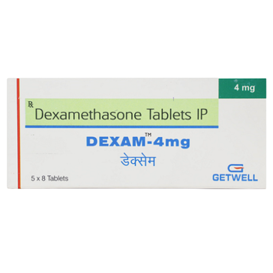 Dexam 4mg Tablet contains Dexamethasone, a potent synthetic corticosteroid with significant anti-inflammatory and immunosuppressive properties. It works by binding to intracellular glucocorticoid receptors, modulating gene expression to suppress the immune response and reduce inflammation. This action leads to decreased production of inflammatory mediators, inhibition of leukocyte migration, and stabilization of lysosomal membranes. Dexamethasone is highly effective in treating a wide range of conditions due to its broad pharmacological effects, including its ability to cross the blood-brain barrier, making it useful in cerebral edema.