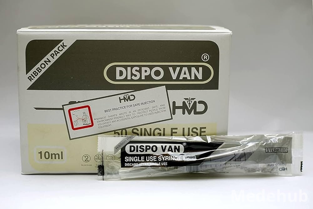 DISPOVAN 10ML refers to a sterile, single-use disposable syringe designed for the accurate and safe administration or aspiration of fluids in medical settings. These syringes are typically made from medical-grade polypropylene and feature a clear barrel for easy visualization of the fluid volume. The plunger is designed for smooth movement, ensuring precise control during injection or aspiration. Each syringe is individually packed to maintain sterility until the point of use, minimizing the risk of contamination and infection.