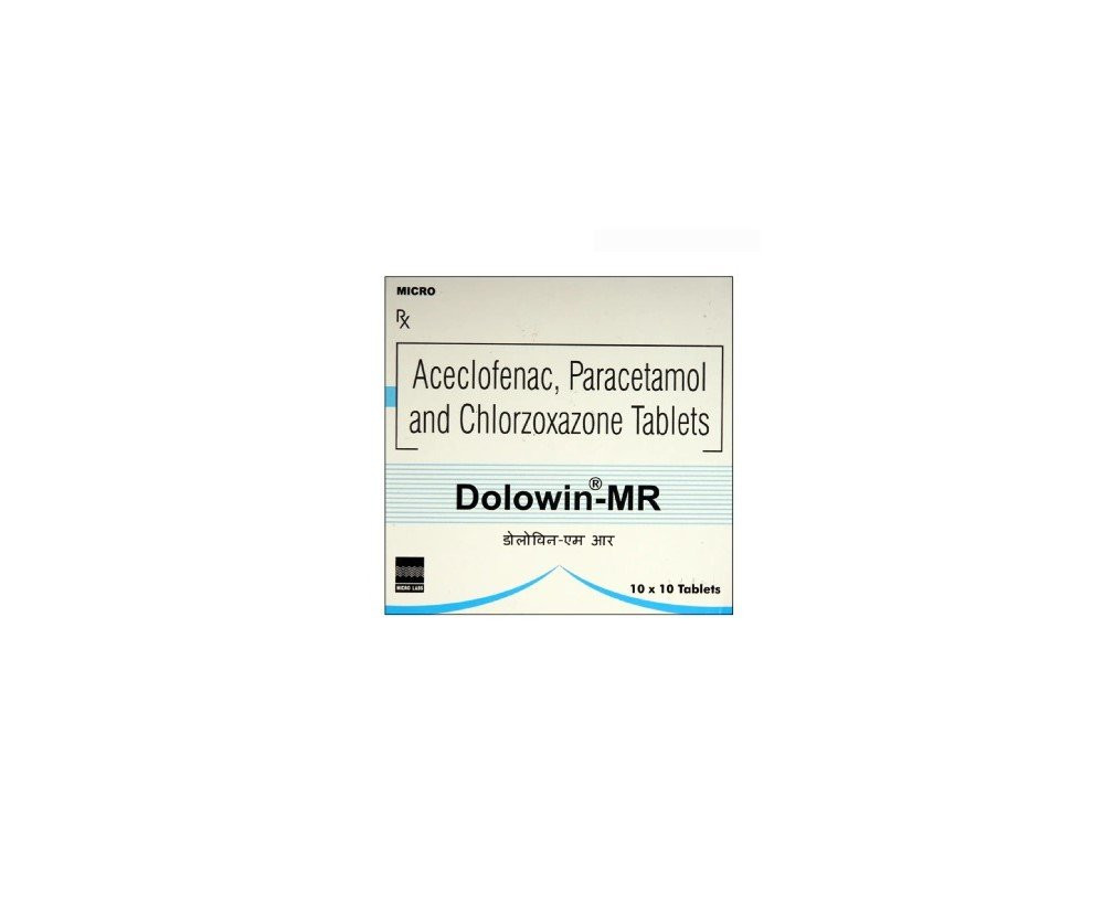Dolowin MR Tab is a combination medication containing Aceclofenac, a non-steroidal anti-inflammatory drug (NSAID), and Thiocolchicoside, a muscle relaxant. Aceclofenac works by inhibiting cyclooxygenase (COX) enzymes, thereby reducing the synthesis of prostaglandins, which are responsible for pain and inflammation. Thiocolchicoside acts as a centrally acting muscle relaxant, primarily through its agonist action on GABA-A receptors and glycine receptors, which helps to relieve muscle spasms and associated pain.