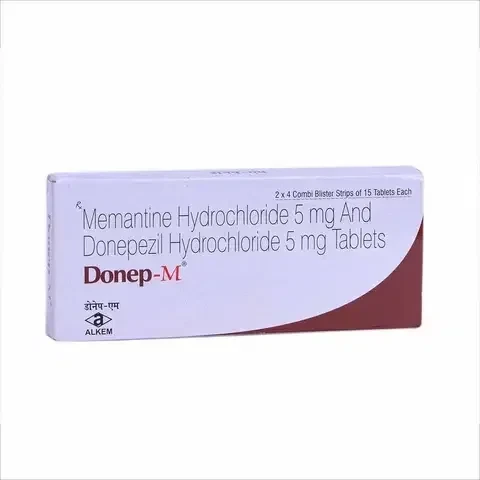 Donep M Tablet is a combination medication used in the treatment of moderate to severe Alzheimer's disease. It typically combines Donepezil, an acetylcholinesterase inhibitor, with Memantine, an NMDA receptor antagonist. Donepezil works by increasing the amount of acetylcholine, a natural substance in the brain that is essential for memory, thought, and reasoning. Memantine, on the other hand, works by regulating the activity of glutamate, another brain chemical involved in learning and memory, which can be overactive in Alzheimer's disease.