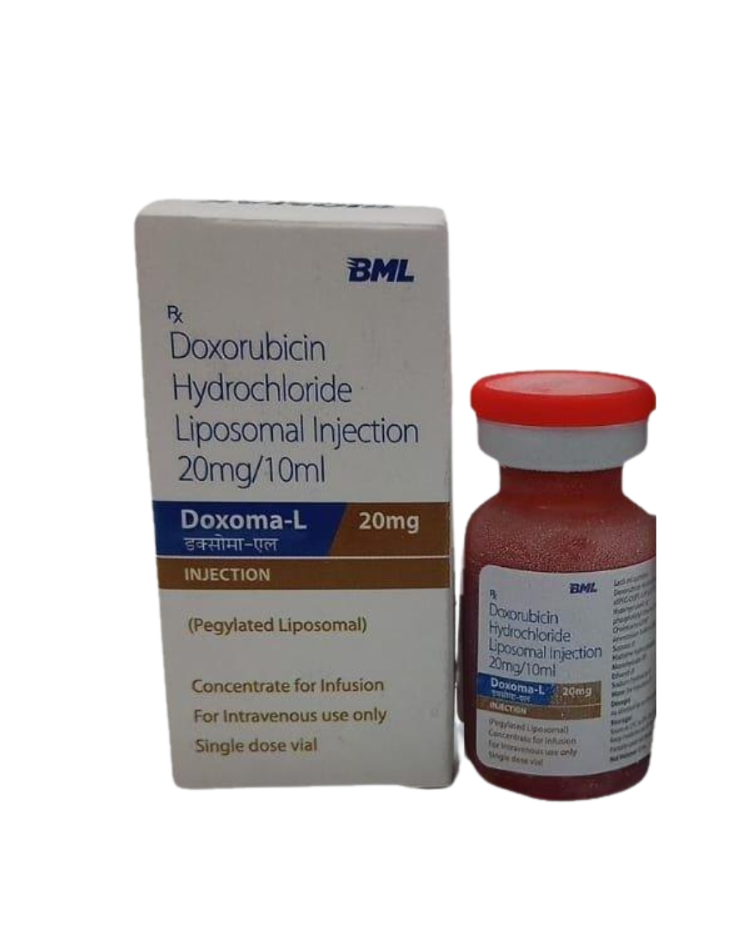 DOXOMA-L 20MG INJ VIAL is a liposomal formulation of doxorubicin, an anthracycline topoisomerase inhibitor widely used in cancer chemotherapy. This specialized formulation encapsulates doxorubicin within lipid vesicles, which allows for a prolonged circulation time in the bloodstream and preferential accumulation within tumor tissues through the enhanced permeability and retention (EPR) effect. This mechanism helps to deliver a higher concentration of the drug directly to cancer cells while potentially minimizing exposure to healthy tissues, thereby reducing common systemic toxicities such as cardiotoxicity and myelosuppression often associated with conventional doxorubicin. It exerts its cytotoxic effects by intercalating into DNA, inhibiting topoisomerase II, and generating free radicals, leading to DNA damage and apoptosis in rapidly dividing cancer cells, offering a more favorable safety profile.