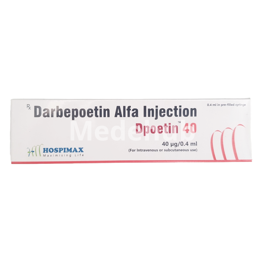 Dpoetin 60 mcg Injection contains Darbepoetin Alfa, an antineoplastic medicine that belongs to the class of hematopoietic growth factors. It is prescribed to treat anemia (low red blood cell count) in patients with chronic kidney disease and in those who develop anemia due to chemotherapy for certain cancers. Common symptoms of anemia include tiredness, weakness, and shortness of breath.