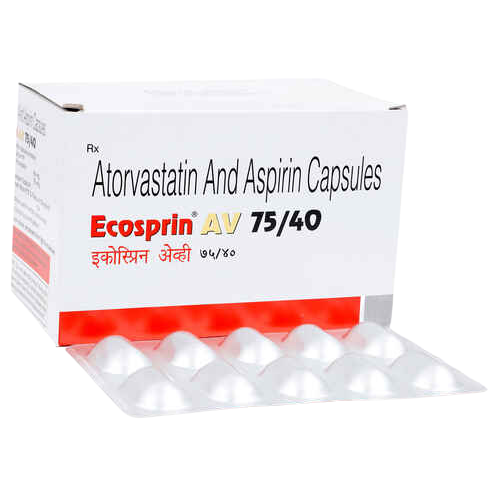The synergistic action of these two components makes Ecosprin AV 75/40 highly effective in managing and preventing cardiovascular diseases. It is typically prescribed for patients at high risk of atherosclerotic cardiovascular events, including those with established coronary artery disease, a history of myocardial infarction or stroke, or individuals with multiple risk factors such as hypertension, diabetes, and dyslipidemia. The combination addresses both the lipid profile and platelet aggregation, offering comprehensive cardiovascular protection and reducing the likelihood of future cardiac events.