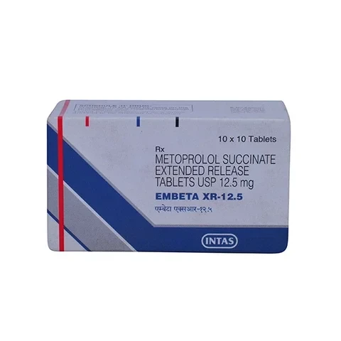 EMBETA XR contains Metoprolol Succinate in an extended-release formulation, a selective beta-1 adrenergic blocker. This medication works by blocking the effects of adrenaline on the heart, leading to a reduction in heart rate, cardiac output, and blood pressure. The extended-release formulation ensures a steady therapeutic effect over 24 hours, allowing for once-daily dosing. It is widely used in the management of hypertension, angina pectoris, and stable symptomatic heart failure. By reducing the heart's workload and oxygen demand, Metoprolol XR helps to alleviate symptoms of angina and improve cardiac function in heart failure patients. Its selective action primarily targets beta-1 receptors in the heart, minimizing effects on the lungs compared to non-selective beta-blockers.