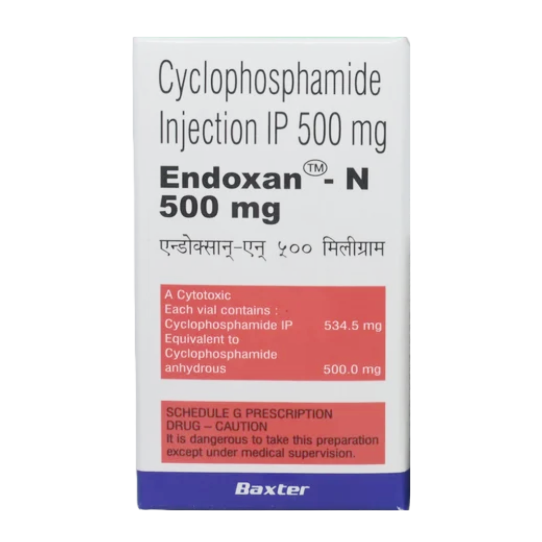 Endoxan N 500mg Injection contains Cyclophosphamide, an alkylating antineoplastic agent that interferes with DNA replication and transcription, leading to cell death. It is a prodrug that requires metabolic activation in the liver to its active forms, phosphoramide mustard and acrolein. These active metabolites cross-link DNA strands, preventing cell division and growth, making it effective against rapidly proliferating cells, such as cancer cells.