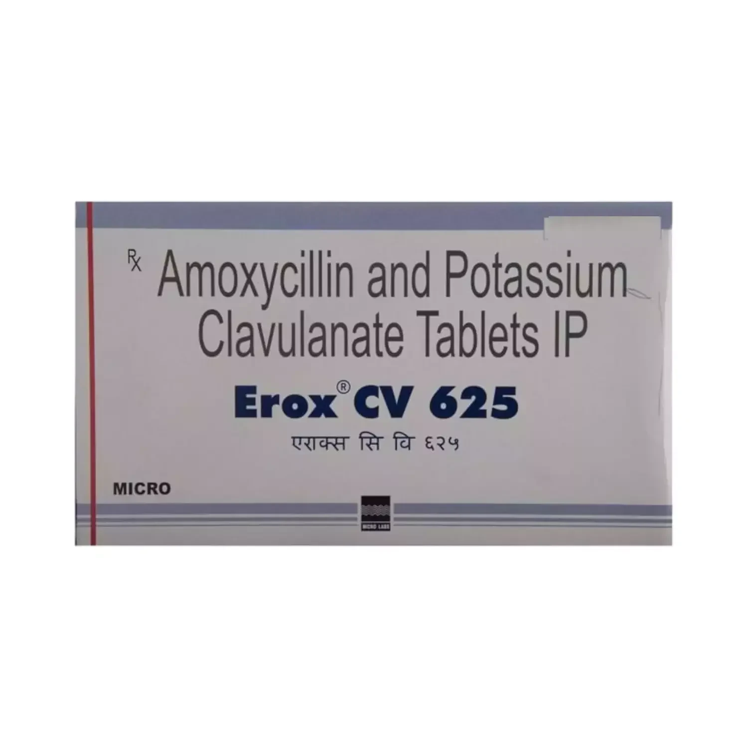EROX CV 625MG TAB is a combination antibiotic containing Amoxicillin and Clavulanic Acid. Amoxicillin is a penicillin-class antibiotic that inhibits bacterial cell wall synthesis, leading to bacterial cell death. Clavulanic Acid is a beta-lactamase inhibitor that protects amoxicillin from degradation by beta-lactamase enzymes produced by many resistant bacteria, thereby extending amoxicillin's antibacterial spectrum. This synergistic combination is highly effective against a broad range of bacterial infections, including those resistant to amoxicillin alone, making it a valuable treatment for respiratory, urinary, skin, and other systemic infections. It is particularly useful in situations where bacterial resistance is suspected or confirmed.