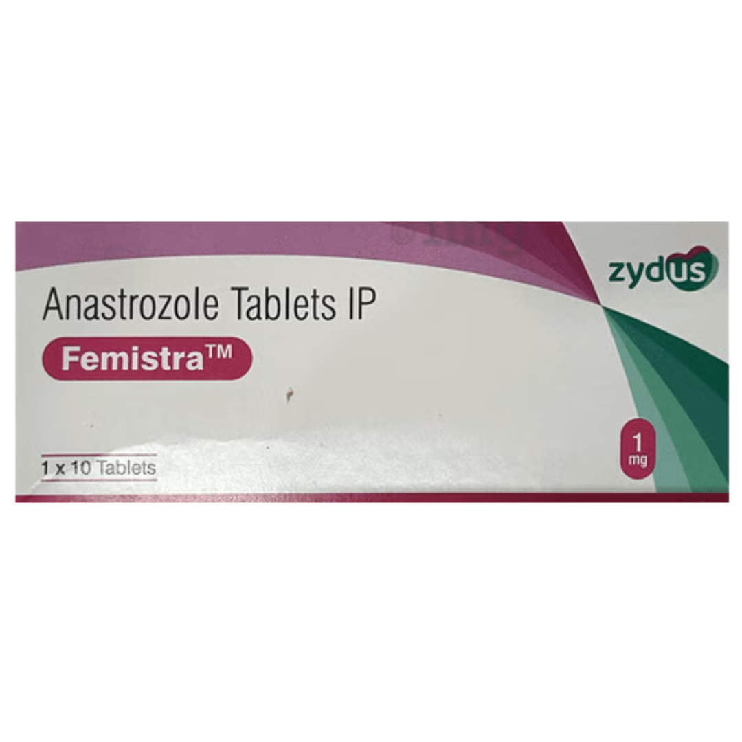 Femistra 1mg Tablet contains Anastrozole, an aromatase inhibitor primarily used in postmenopausal women for the treatment of hormone receptor-positive early or advanced breast cancer. It works by significantly reducing the amount of estrogen produced in the body, which is a key hormone that can stimulate the growth of certain types of breast cancer cells. By inhibiting the aromatase enzyme, Anastrozole effectively blocks the conversion of androgens into estrogens in peripheral tissues, thereby lowering systemic estrogen levels. This action helps to slow or stop the growth of estrogen-sensitive tumors.