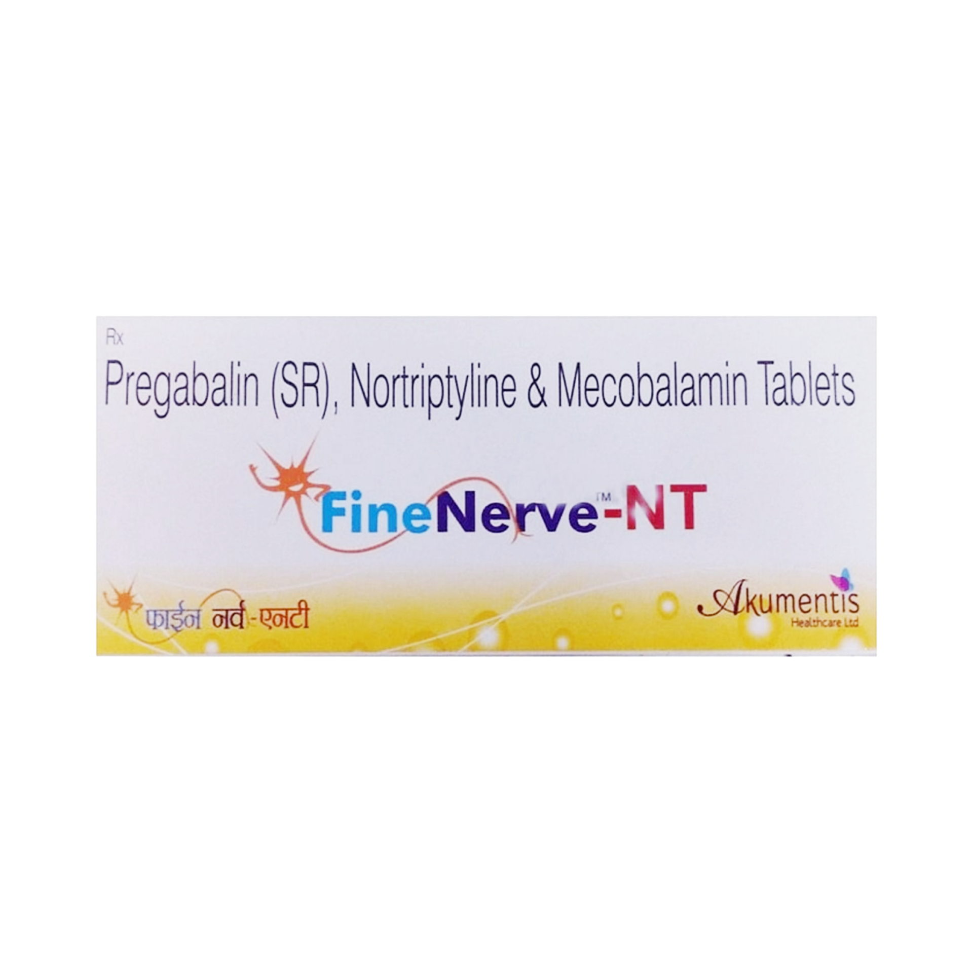 Finenerve NT is a combination medication containing Gabapentin, an anticonvulsant, and Nortriptyline, a tricyclic antidepressant. This formulation is primarily indicated for the treatment of neuropathic pain, which arises from damage to the nervous system. Gabapentin works by modulating the activity of voltage-gated calcium channels in the brain, thereby reducing the release of excitatory neurotransmitters and calming overactive nerves. Nortriptyline, on the other hand, increases the availability of neurotransmitters like serotonin and norepinephrine in the brain, which are crucial for pain modulation and mood regulation. The combined action provides comprehensive relief from chronic nerve pain symptoms such as burning, tingling, and shooting sensations, while also addressing associated sleep disturbances and mood issues.