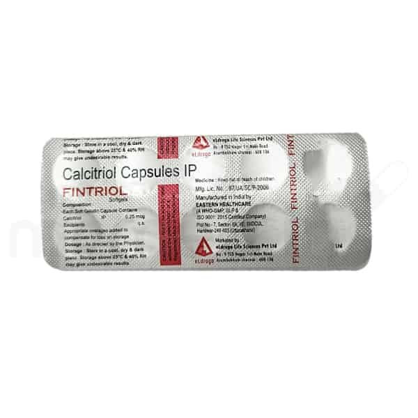 Fintriol Cap contains Calcitriol, which is the biologically active form of Vitamin D3, also known as 1,25-dihydroxycholecalciferol. This potent hormone plays a pivotal role in regulating calcium and phosphate levels within the body, which are absolutely essential for maintaining strong bones and overall mineral homeostasis. Calcitriol primarily functions by promoting the efficient absorption of dietary calcium from the gastrointestinal tract and facilitating its proper incorporation into bone tissue, thereby supporting bone mineralization and strength. It is frequently prescribed to treat various conditions where the body's natural ability to produce active vitamin D is impaired, such as in chronic kidney disease (renal osteodystrophy), or in cases requiring enhanced calcium metabolism, like postmenopausal osteoporosis and hypoparathyroidism, ensuring proper bone health and preventing bone disorders.