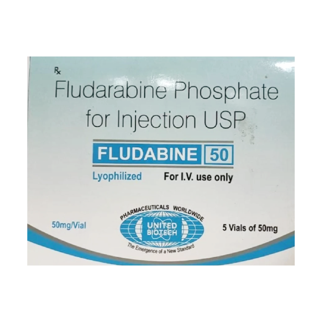 Fludabine 50mg Injection contains Fludarabine, a purine analog antineoplastic agent. It acts as a prodrug that is rapidly converted in the body to its active metabolite, 2-fluoro-ara-ATP. This active form then interferes with DNA synthesis and repair by inhibiting DNA polymerase, ribonucleotide reductase, and DNA primase, crucial enzymes for cell proliferation. This disruption leads to the accumulation of DNA strand breaks and ultimately triggers programmed cell death (apoptosis) in malignant lymphocytes.