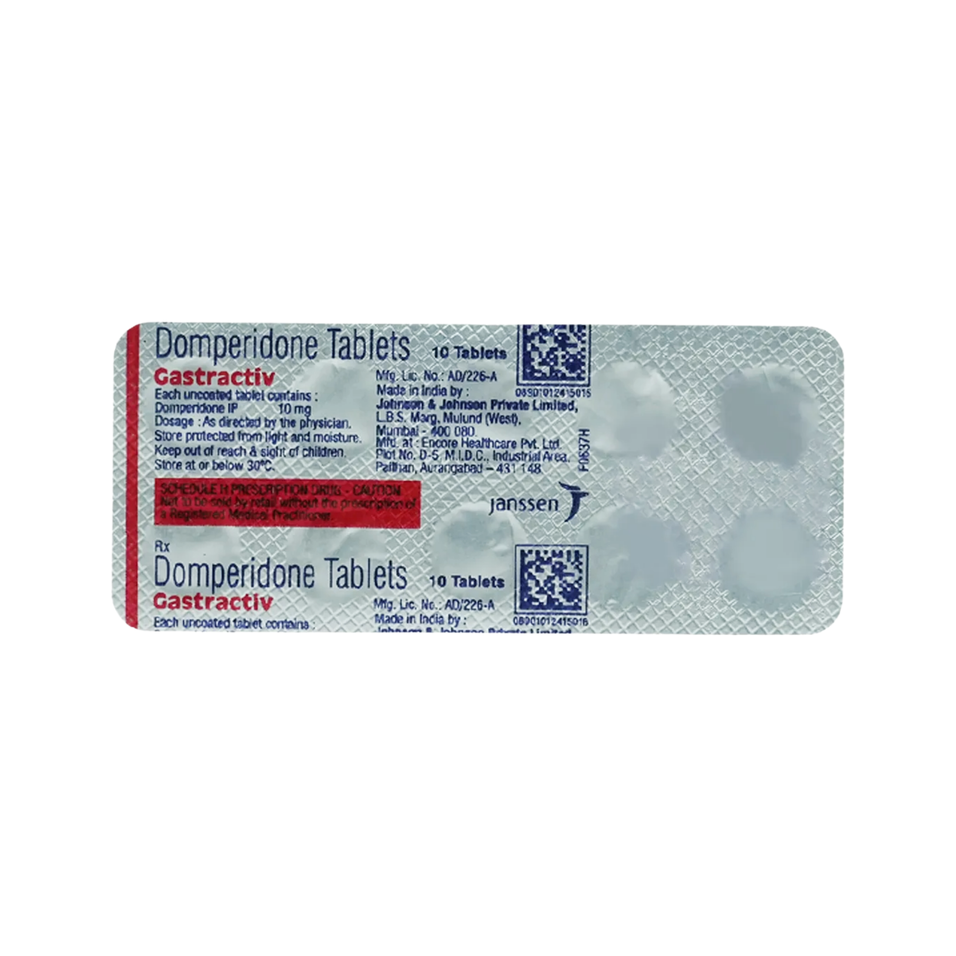 GASTRACTIV TAB 10 is a targeted medication designed to deliver rapid and effective relief from the uncomfortable symptoms of indigestion, heartburn, and excessive acidity. Its formulation typically incorporates active ingredients that either promptly neutralize surplus stomach acid or enhance the body's natural digestive processes. Depending on its precise composition, it may feature well-known antacids such as calcium carbonate or magnesium hydroxide, or include prokinetic agents aimed at improving gastric motility. The primary therapeutic objective of GASTRACTIV is to swiftly restore gastrointestinal comfort by reducing acid-induced irritation, alleviating bothersome bloating, and promoting more efficient digestion. It acts quickly to soothe the irritated digestive tract, establishing itself as an effective and reliable option for both episodic and chronic gastric discomfort, thereby improving daily well-being.
