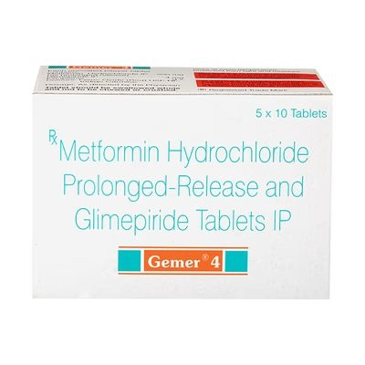 Gemer 4 contains Glimepiride, an oral sulfonylurea medication used to lower blood glucose levels in adults with type 2 diabetes mellitus. Glimepiride works primarily by stimulating the beta cells in the pancreas to release more insulin. This increased insulin secretion helps to move glucose from the bloodstream into cells, thereby reducing blood glucose levels. It also has some extrapancreatic effects, such as increasing peripheral glucose uptake and utilization.