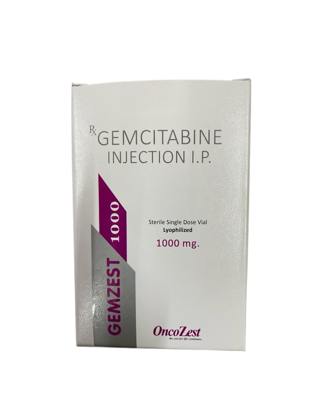 Gemzest 1000mg Injection contains gemcitabine, a chemotherapy medicine used in the treatment of bladder cancer, breast cancer, ovarian cancer, pancreatic cancer, and non-small cell lung cancer. Cancer is a condition where cells grow and multiply abnormally and uncontrollably. Before starting this medicine, inform your doctor if you have a history of heart disease, liver or kidney problems, recent radiotherapy, or recent vaccinations.