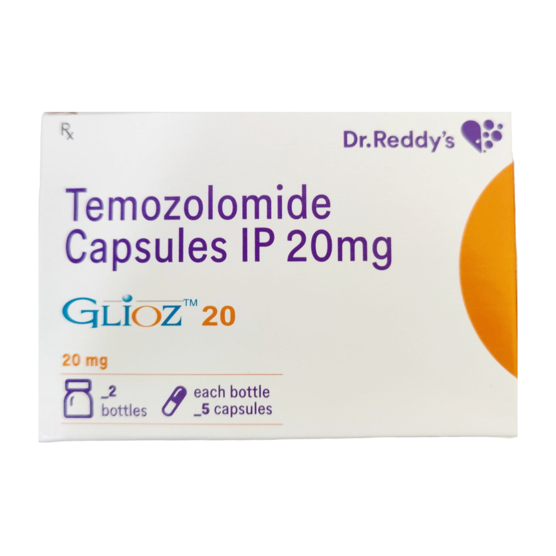 Glioz 20mg Capsule contains Temozolomide, an oral alkylating agent used in the treatment of certain brain tumors. Temozolomide is a prodrug that is rapidly converted to its active metabolite, MTIC (5-(3-methyl-1-triazen-1-yl)imidazole-4-carboxamide), at physiological pH. MTIC exerts its cytotoxic effects by methylating DNA at various sites, primarily at the N7-guanine and O6-guanine positions. This methylation leads to DNA damage, triggering cell cycle arrest and ultimately apoptosis in rapidly dividing cancer cells.